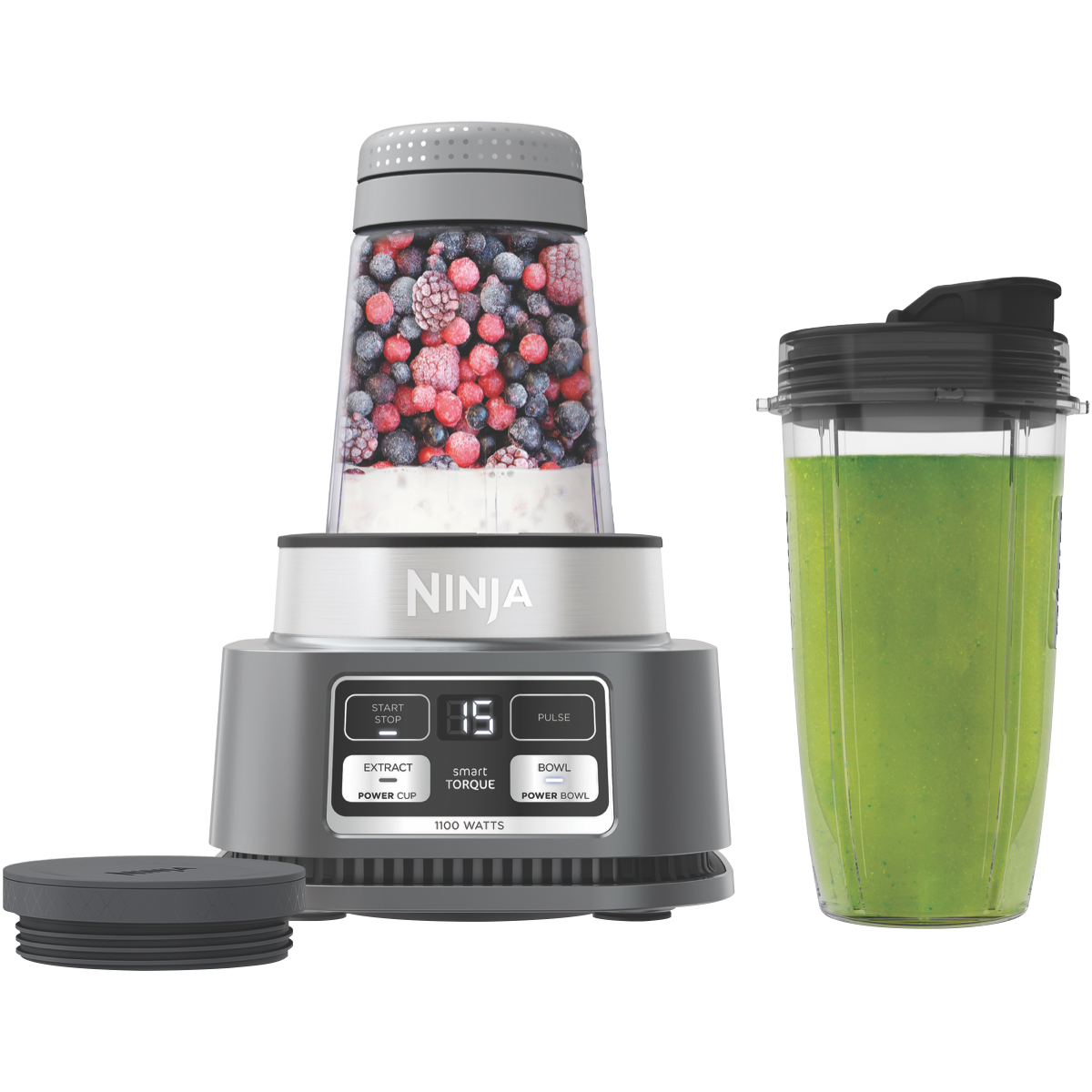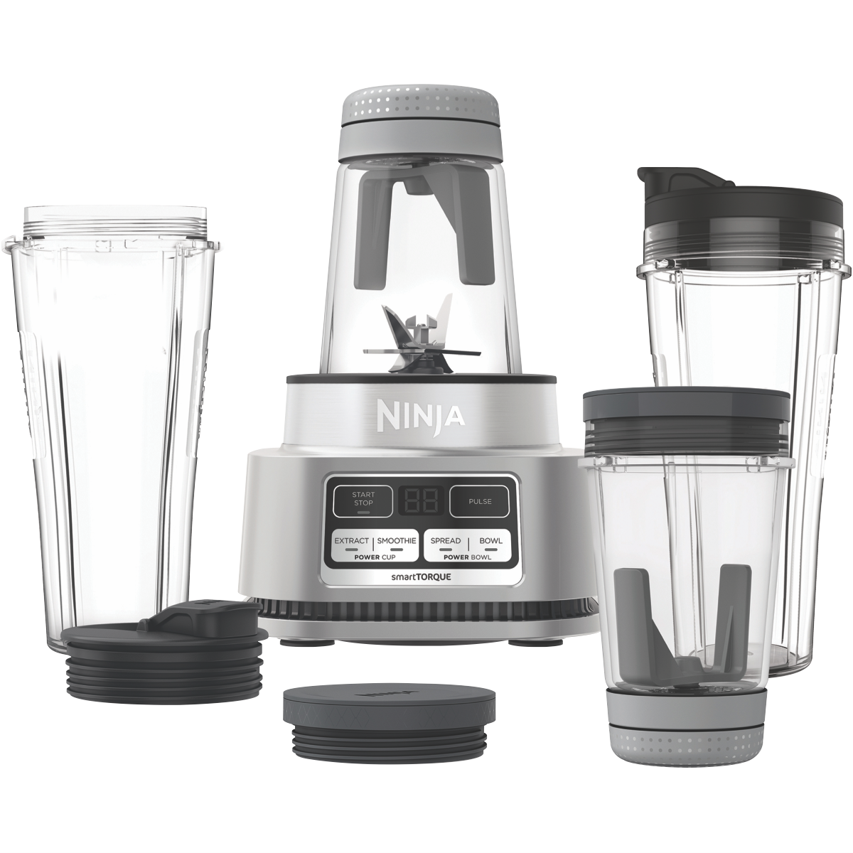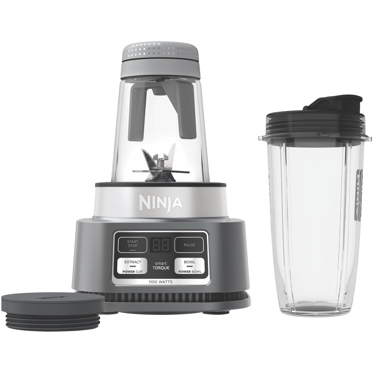 Take your blending and mixing game to the next level with the Ninja Precision Blend and Mix. With 1100 Watts of power and Hybrid Edge Stainless Steel Blades this versatile blender makes quick work of smoothies soups dips and more. The two 700ml Power Nutri Cups are great for personal smoothies on the go while the 400ml Power Nutri Bowls with storage lids let you prep sauces and dips in advance. Four Auto-iQ Programs take the guesswork out of drink and bowl making. SmartTORQUE technology provides consistent power and precision for perfect results every time. The sleek silver design looks great on any countertop and all attachments are dishwasher safe for easy cleanup. With advanced features like preset programs and portable blending cups this Ninja blender aims to make your life easier. The manufacturer's part number for this product is CB102. Bring professional performance home with the Ninja Precision Blend and Mix today.