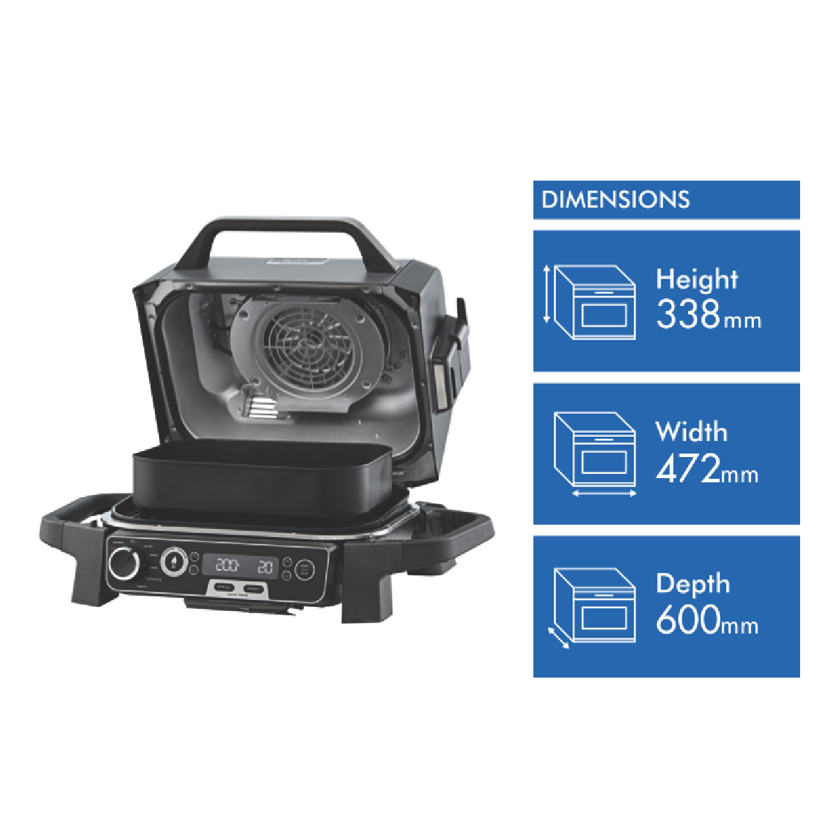 The Ninja Woodfire Electric BBQ Grill and Smoker simplifies outdoor cooking by merging the authentic taste of woodfire BBQ with electric convenience. Its Woodfire technology heats food quickly just add half a cup of wood pellets to the smoker box for smoky flavour in steaks chops and veggies. With seven cooking programs Grill Smoke Air Fry Bake Roast Dehydrate and Reheat it offers versatility for various dishes. The 472mm x 338mm cooking surface fits large portions and the Crisper Basket is perfect for healthy fries and wings. This appliance allows for indoor grilling providing woodfire tastes year-round. The touch button control panel integrated timer and temperature probe ensure perfect cooking results while the removable grease tray makes cleaning easy. Lightweight at 13.9kg and with a 1760 watt output it's portable for camping or friends' BBQs. The Ninja Woodfire Electric Grill promises woodfire flavour anytime and comes with a 2 year warranty.
