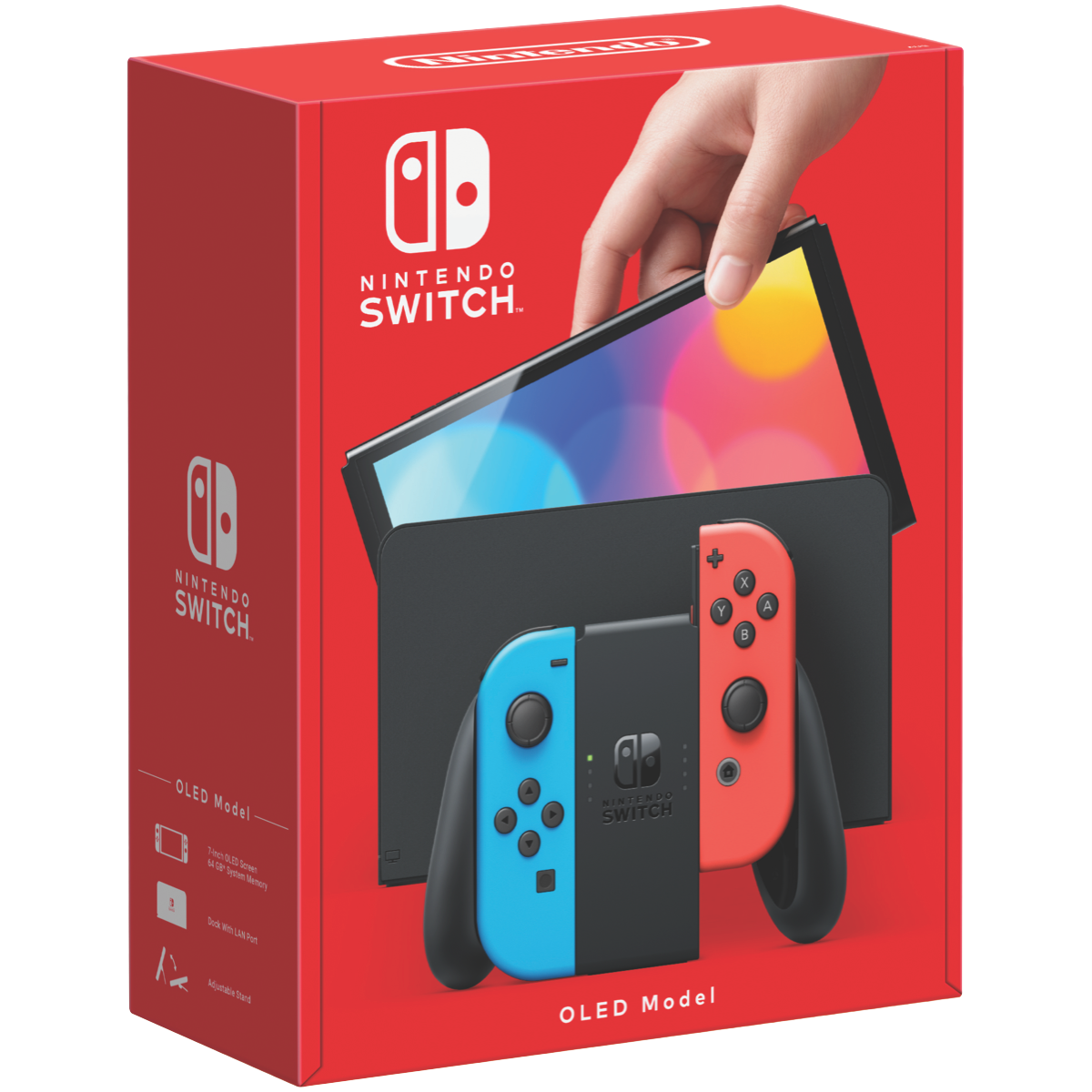 The Nintendo Switch OLED Model opens up a vivid colorful world of gaming in the palm of your hands. With its 7-inch OLED screen this hybrid home and portable console delivers stunningly vivid colors and crisp contrast whether you're gaming on the go or hooked up to your TV. Featuring 64GB of internal storage and support for microSD cards up to 2TB you'll have plenty of space for your favorite digital games from the Nintendo eShop. Weighing just 0.32kg the sleek lightweight console is easy to take anywhere. The enhanced speakers immerse you in stereo sound while the adjustable stand provides multiple viewing angles in tabletop mode. Play iconic Nintendo exclusives like Zelda Mario and Splatoon on the go or on the big screen. With up to 9 hours of battery life you can keep playing your favorite games all day long. The included Joy-Con controllers feature motion controls and HD rumble for immersive gameplay. For multiplayer fun share a Joy-Con with a friend or use multiple controllers. Connect online or locally and battle friends in Mario Kart Super Smash Bros and more. The manufacturer's part number for this product is 99232. Bring your gaming dreams to life with the vivid colors and seamless portability of the Nintendo Switch OLED Model.