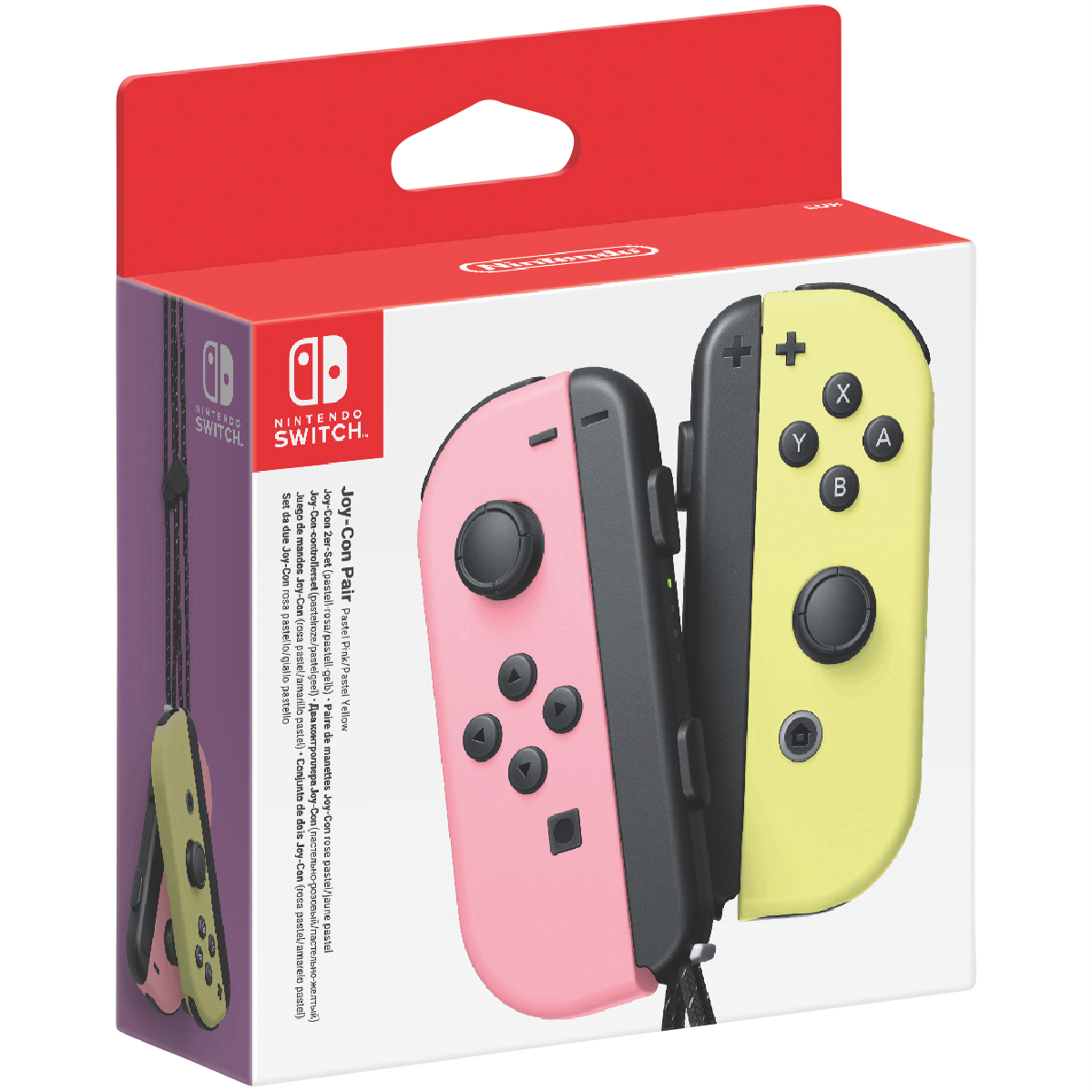 Bring vibrant colour and joy to your Nintendo Switch gaming with this Pastel Pink and Pastel Yellow Joy-Con controller pair. Designed by Nintendo to complement the Switch console these wireless controllers feature motion controls and advanced HD rumble vibration making your games come alive. The accelerometer and gyro-sensor translate your movements into immersive gameplay. Connect the controllers to the included Joy-Con grip or attach them directly to the Switch in handheld mode. With a 12-month warranty this controller pair adds a fun pop of colour while giving you precise control across all your favourite Nintendo Switch games. The manufacturer's part number for this product is 43168. Discover new ways to play with these beautifully-hued Joy-Cons.
