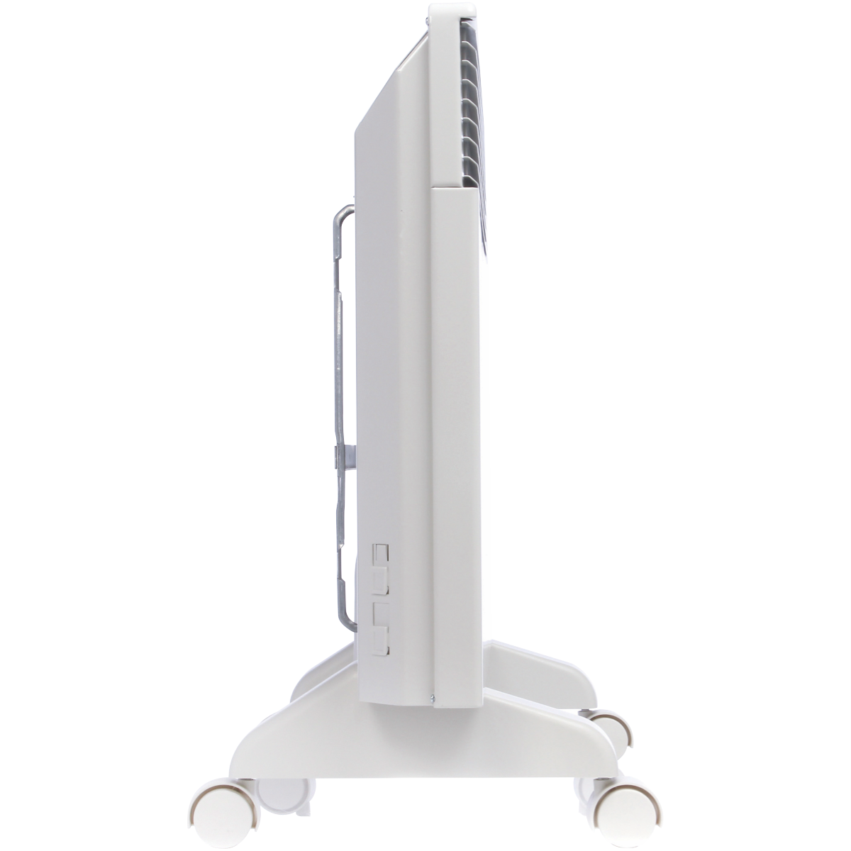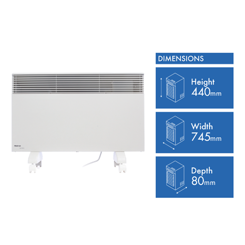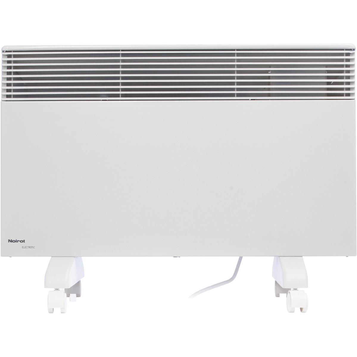 This Noirot Spot Plus Panel Heater 7358-7 features a maximum 2000 watts of heating power and a patented Monobloc element to circulate heat gently efficiently and silently throughout large bedrooms and living spaces. Using the natural process of convection this Noirot heater provides even heat with a gentle upward movement of hot air for warming up in comfort without feeling overheated while the built-in precision thermostat maintains the desired temperature within 0.1 degree Celsius to prevent energy wastage and so you don't feel hot and stuffy. Plus there is no fan making this electric heater both 100% silent and friendly to asthmatics and allergy sufferers. It has lockable childproof settings a thermal safety cut-out for peace of mind easy-glide castors to move the heater from room to room and a bracket hidden behind the heater which conveniently clicks in for easy wall-mounting. It has a lifetime warranty. Take the cosy heat with you into any room and experience effective and efficient heating with this sophisticated European-designed Noirot panel heater.