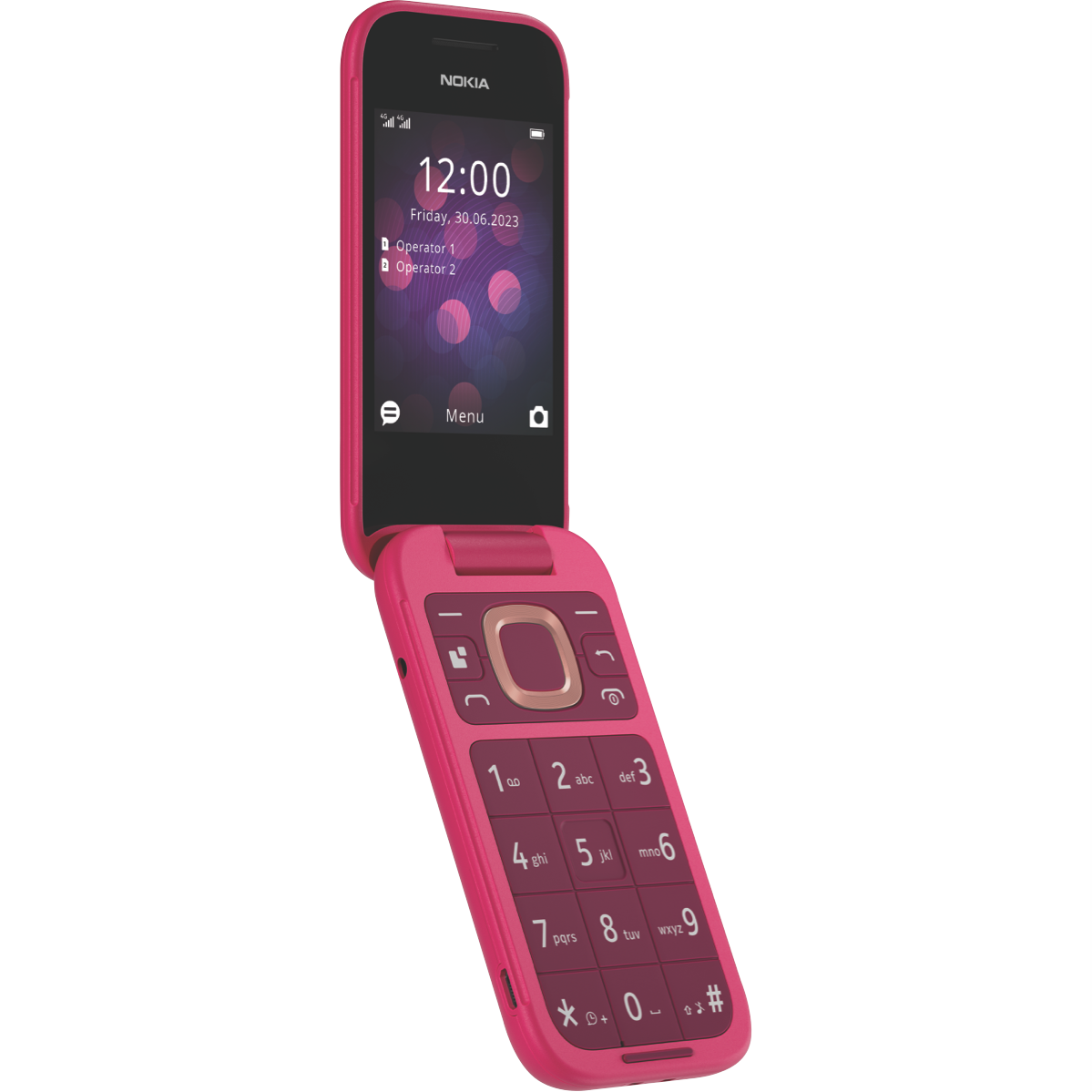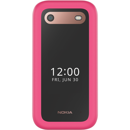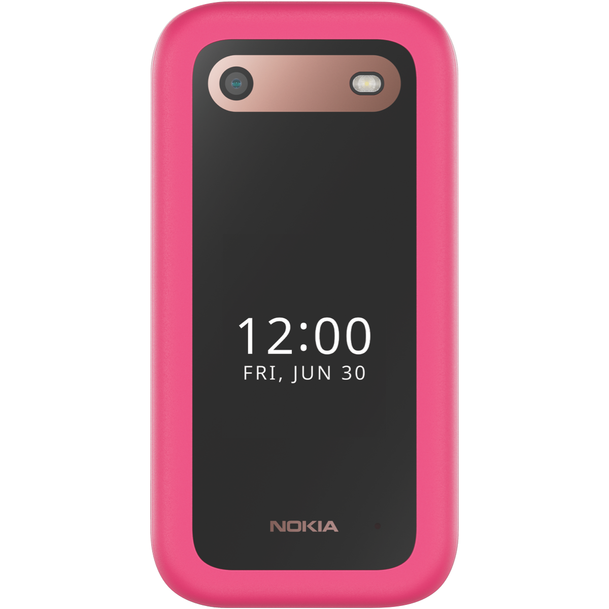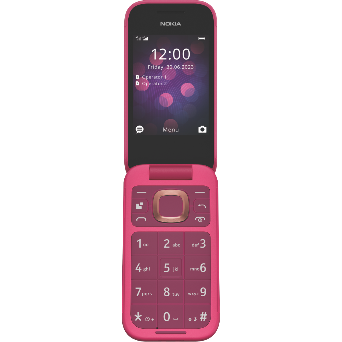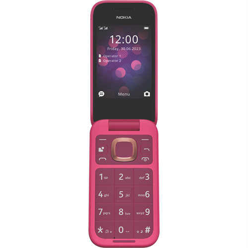 Looking for a simple and reliable flip phone that's easy on the eyes? Meet the Nokia 2660 Flip in a pretty Pop Pink color. This dual SIM phone lets you stay connected on GSM 3G and 4G LTE networks. The 2.8 main display and 1.77 external screen give you all the essentials at a glance. Snap quick pics with the 0.3MP rear camera and expand the 128MB storage up to 32GB with a microSD card. Powered by a 1450mAh removable battery this compact phone measures just 55 x 108 x 18.9mm and weighs only 123g. The Nokia 2660 Flip (5783439) comes with a 24-month warranty for extra peace of mind.