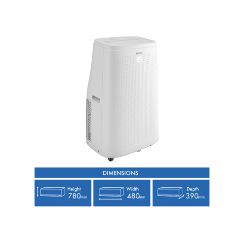 This Olimpia Splendid 4.7kW(1) Portable Air Conditioner PROCOOL16E lets even larger rooms stay cool in the heat. It can dehumidify at a rate of up to 2 litres per hour and drains via the attached 1500mm flexible pipe. Rooms get chilled fast with a maximum airflow of 500 cubic metres per hour(2) across three fan speeds. Control everything on the units' touch buttons or use the included remote control for easy adjustments. Don't feel the summer anymore with this stellar portable cooler. Disclaimers: (1) Output power for cooling (AN/NZS 3823.1.5:2015). Indoor temperature 35/24. (2) Dehumidification test. Indoor temperature DB 30 degrees C - WB 27.1 degrees C.