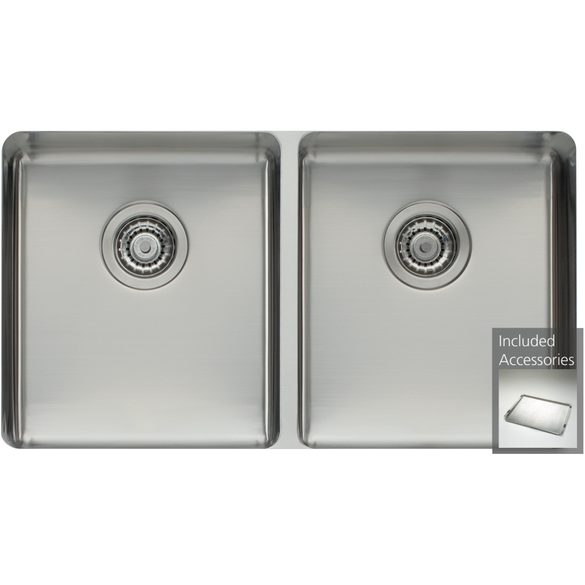 Add a touch of modern elegance to your kitchen with the Oliveri Double Bowl Undermount Sink. Expertly crafted from durable stainless steel this sink features a stylish design with two equal-sized bowls each with a generous 30L capacity to accommodate pots pans and dishes with ease. The 25mm radius corners and 785mm width create a spacious interior while the 455mm depth adds convenience. This undermount sink installs seamlessly into your benchtop for a sleek contemporary look. The unique drainer design provides an integrated drying space that keeps your benchtop clutter-free. With soundproofing for a quieter experience and soft-touch stainless steel that resists scratches and stains this Oliveri sink will withstand years of daily use. It includes a benchtop drainer tray two 90mm basket wastes and lifetime warranty for added peace of mind. Give your kitchen a modern makeover with the versatile storage and effortless style of the Oliveri Double Bowl Undermount Sink. The manufacturer's part number for this product is SN1063U. Enhance your kitchen with this stylish and functional sink today.