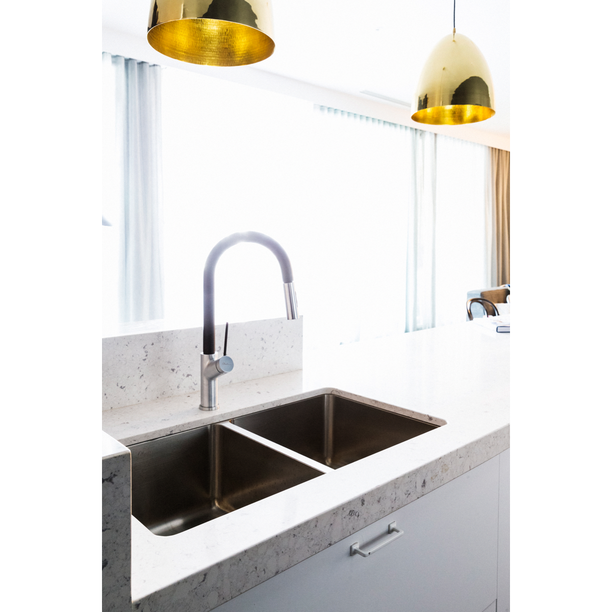 Additional Features Fabricated with 25mm radius corners, Unique drainer design, Softtone%26#168; and soundproofing