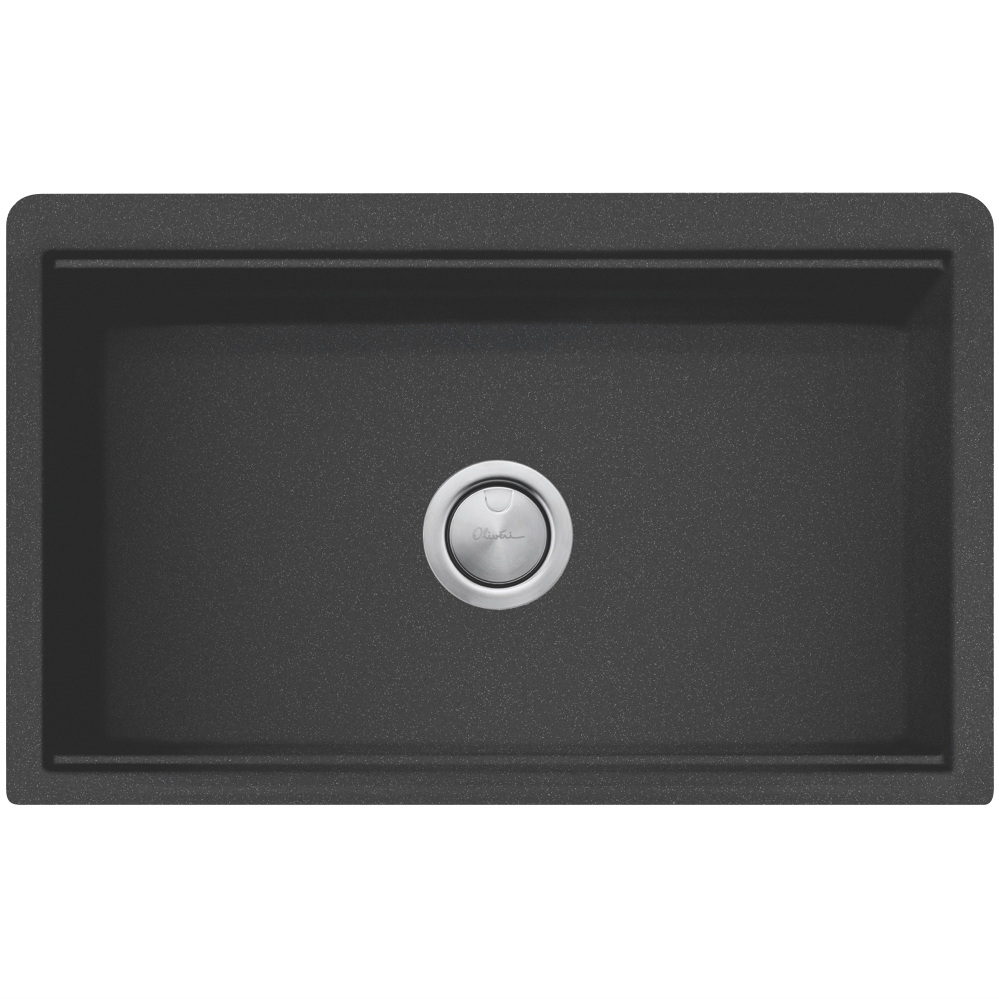 Transform your kitchen with the elegant Oliveri Santorini Black Farmhouse Sink. This stylish granite sink provides a modern farmhouse look with its deep single bowl design perfect for washing large pots and pans. Crafted from durable moulded granite the Santorini sink is designed for longevity and easy maintenance. Its reversible design allows you to choose between a rounded or angular front sink edge to match your style. With a large bowl capacity of 74L and dimensions of 838mm x 520mm x 240mm this spacious sink can handle even your toughest cleanup jobs.The Santorini's deep single bowl measuring 757mm x 425mm x 240mm gives you plenty of room for rinsing vegetables filling stockpots or even bathing a small pet. Made from a robust combination of 80% granite and quartz particles mixed with 20% acrylic this sink provides the visual appeal of natural stone coupled with strength and stain resistance. Installation is simplified with the Santorini s undermount design. Suitable for cabinets 900mm and wider this sink will modernize your kitchen while still fitting in with your existing cabinetry. It comes complete with an AC28 basket waste and lifetime manufacturer's warranty for peace of mind. With its versatile style generous size and durable granite construction the Oliveri Santorini Black Farmhouse Sink is the perfect choice to create an eye-catching focal point in your kitchen. The manufacturer's part number for this product is ST-BL1584U. Bring home this modern farmhouse sink to upgrade your kitchen today.