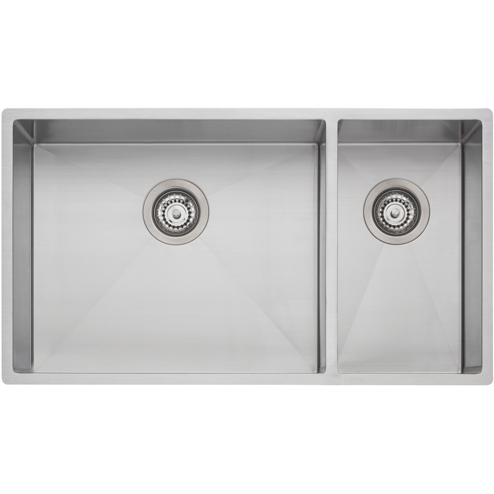Transform your kitchen with the stylish Oliveri Spectra 1& 1/2 Bowl Stainless Sink. This undermount topmount or flushmount sink is crafted from high quality 304 grade 18/10 brushed stainless steel ensuring durability and easy cleaning. With a large 40 litre bowl and smaller 18 litre bowl you'll have plenty of space to wash dishes rinse produce and more. The 5mm radius corners add softness while soundproofing reduces noise. Also included are two basket wastes three bowl protectors and a bamboo board with drainer tray. Made in Australia the sink dimensions measure 790mm x 445mm and minimum cabinet size is 900mm. With lifetime warranty the Oliveri Spectra Sink offers a modern look for any kitchen. The manufacturer's part number for this product is SB35SS.