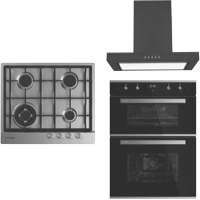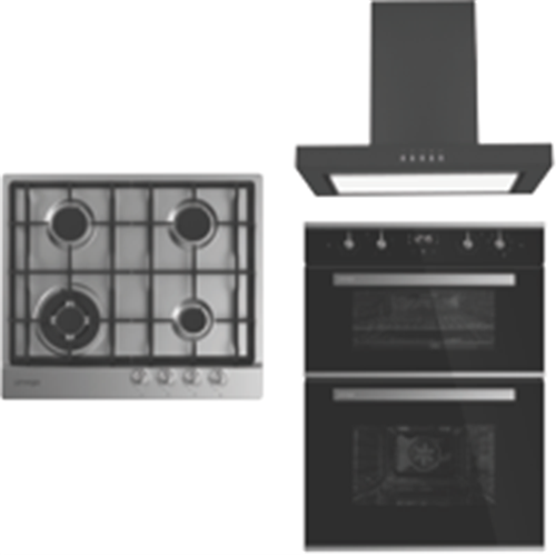Add a touch of stylish sophistication to your kitchen with this Omega 60cm Double Oven Gas Cooking Package ODO684GASCTGG. Featuring a 60cm electric double oven (ODO684XTGG) a 60cm Ceramic Cooktop (OCC64TZTGG) and a 60cm Canopy Rangehood in matte black (ORC60MB) this kitchen package has everything you need to transform your home and kitchen space. The included 102L double oven features 60 litres of space below for roasting and grilling while extra side dishes or desserts can cook separately in the 42 litre cavity above. With the black gas cooktop you can cook delicious stir-fries or steaks on the high-powered wok burner while side dishes boil or simmer on the accompanying burners. While the 752m3/hr net extraction capacity keeps your kitchen stylishly on trend and always smelling fresh.