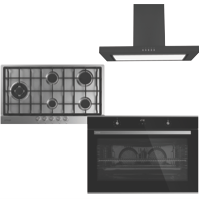 Set up your kitchen with this sophisticated Omega 90cm Gas Cooking Pack (OBO960GASCTGG). Featuring a 90cm electric oven (OBO960XTGG) a 90cm gas cooktop (OCG95XTGG) and a 90cm canopy rangehood (ORC90MB) this kitchen package has everything you need to update your kitchen area. A large clear window for keeping an eye on cakes without opening the door too soon the Omega Electric Oven has a generous 129-litre gross capacity cavity with 9 cooking functions to cover all your roasting baking and grilling requirements including multifunction settings that utilise both top and bottom elements for a thoroughly perfect result. Available exclusively at The Good Guys the user-friendly and ergonomically-designed control knob dials on the Omega Gas Cooktop are both stylish and practical with markings to indicate which out of the five dials are used to control each corresponding burner as well as power level markings from high to low so you can control the flame quickly and precisely. Designed to cover your whole cooktop area for maximum extraction as you cook the matte black Omega 90cm Canopy Rangehood keeps your kitchen stylishly on-trend and always smelling fresh.