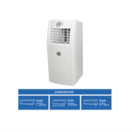Beat the heat this summer with the powerful yet portable Omega Altise 2.6kW Portable Air Conditioner. This cooling-only unit provides a cooling capacity of 2.6kW with its AQUA CHILL technology for greater efficiency. The sleek white design features intuitive touch controls and a 24 hour timer allowing you to customize cooling and target specific rooms. With two fan speeds it circulates filtered air while dehumidifying to maximize comfort. Measuring 320mm wide 730mm high and 370mm deep the compact size fits spaces up to 60m2 for versatile use. The Altise portable AC unit requires only a partially open window and includes a window venting kit. No permanent installation needed simply plug it in and stay cool anywhere. Conveniently portable thanks to smooth-rolling casters the Omega Altise also comes with a handy remote control so you can adjust settings from across the room. With a 2 year manufacturer's warranty for peace of mind this is the perfect portable air conditioning unit for cooling medium to large spaces this summer. The manufacturer's part number for this product is OAPC29. Make the most of your space and beat the heat with the Omega Altise Portable Air Conditioner today.