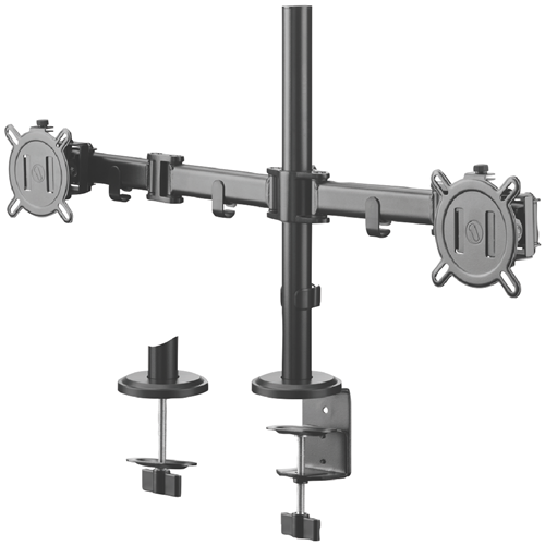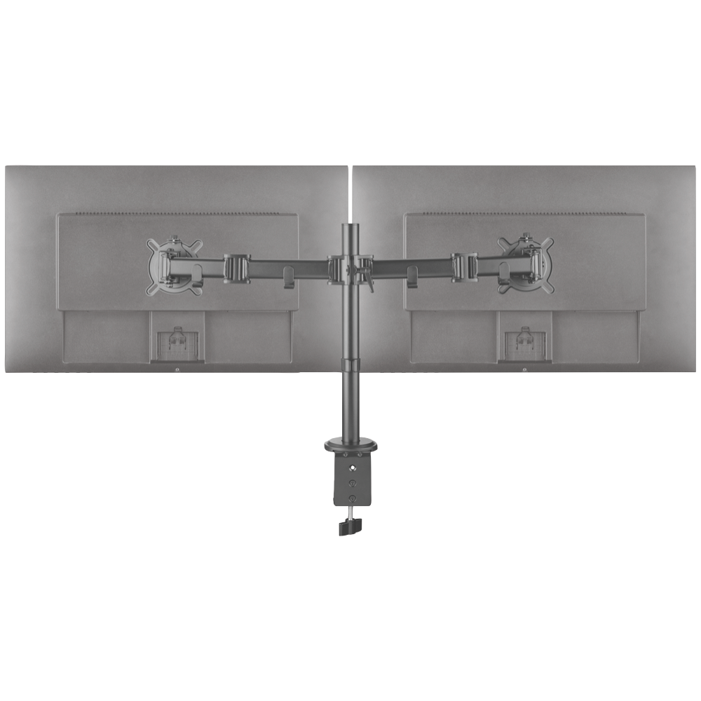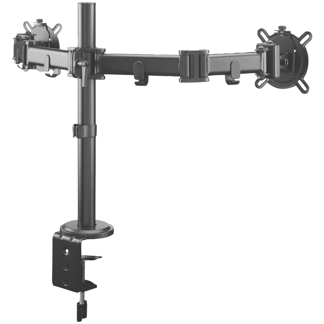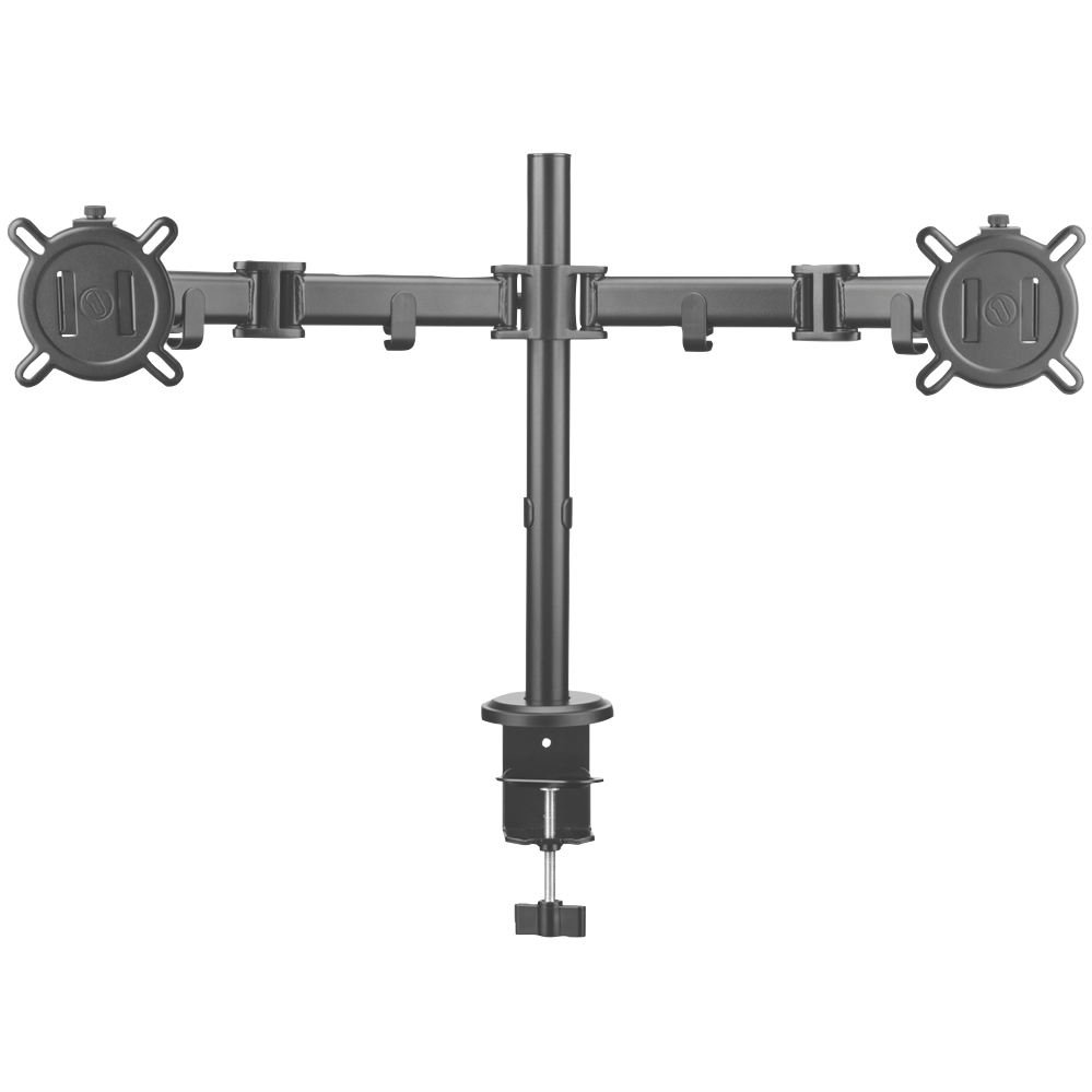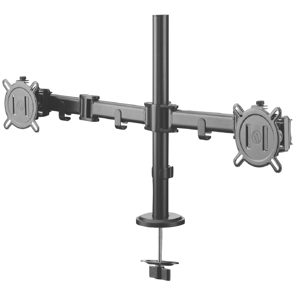 Tidy up your workspace with this dual arm monitor mount that keeps your screens at the perfect height and angle. The black Smart Series design gives you complete flexibility to position two monitors exactly where you need them reducing desk clutter and creating a more comfortable setup for long work sessions. With its sleek appearance and practical functionality this mount transforms how you use your computer space. Model UE-DM2210.