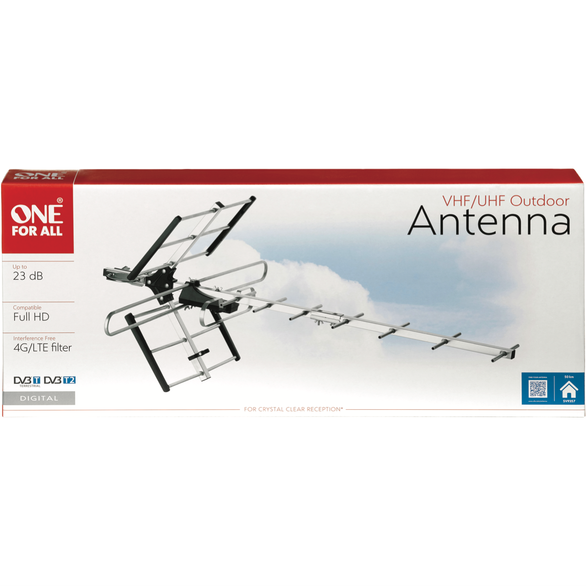 Designed to withstand heavy weather conditions. Easy to install Outdoor antenna capable of receiving all your favourite TV channels in Full HD (DVB-T/T2). For best performance we recommend to use this antenna within a range of 50 km from your nearest transmitter. Compatible with DVB-T/DVB-T2/Freeview programs broadcast in High Definition format (UHF). Minimal interference due to the active noise reduction filters including 3G/4G/5G/LTE filter for crystal clear reception. Simple 4 step assembly all elements already pre-mounted. Includes coaxial cable and connectors.