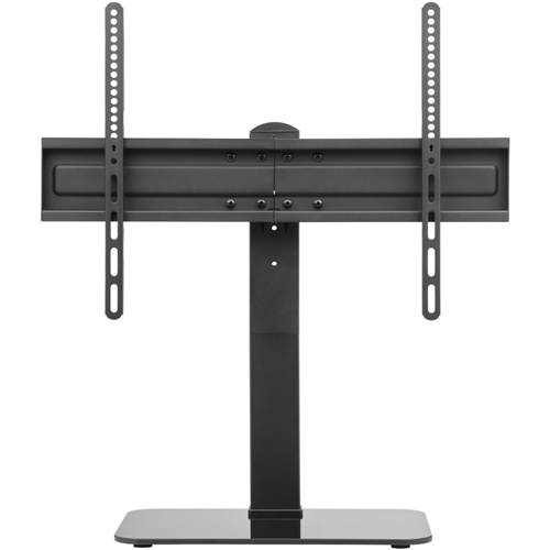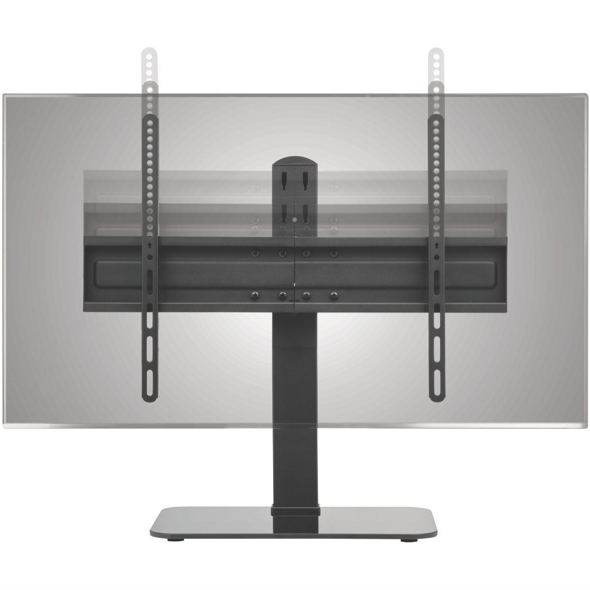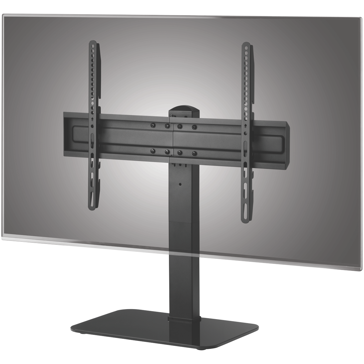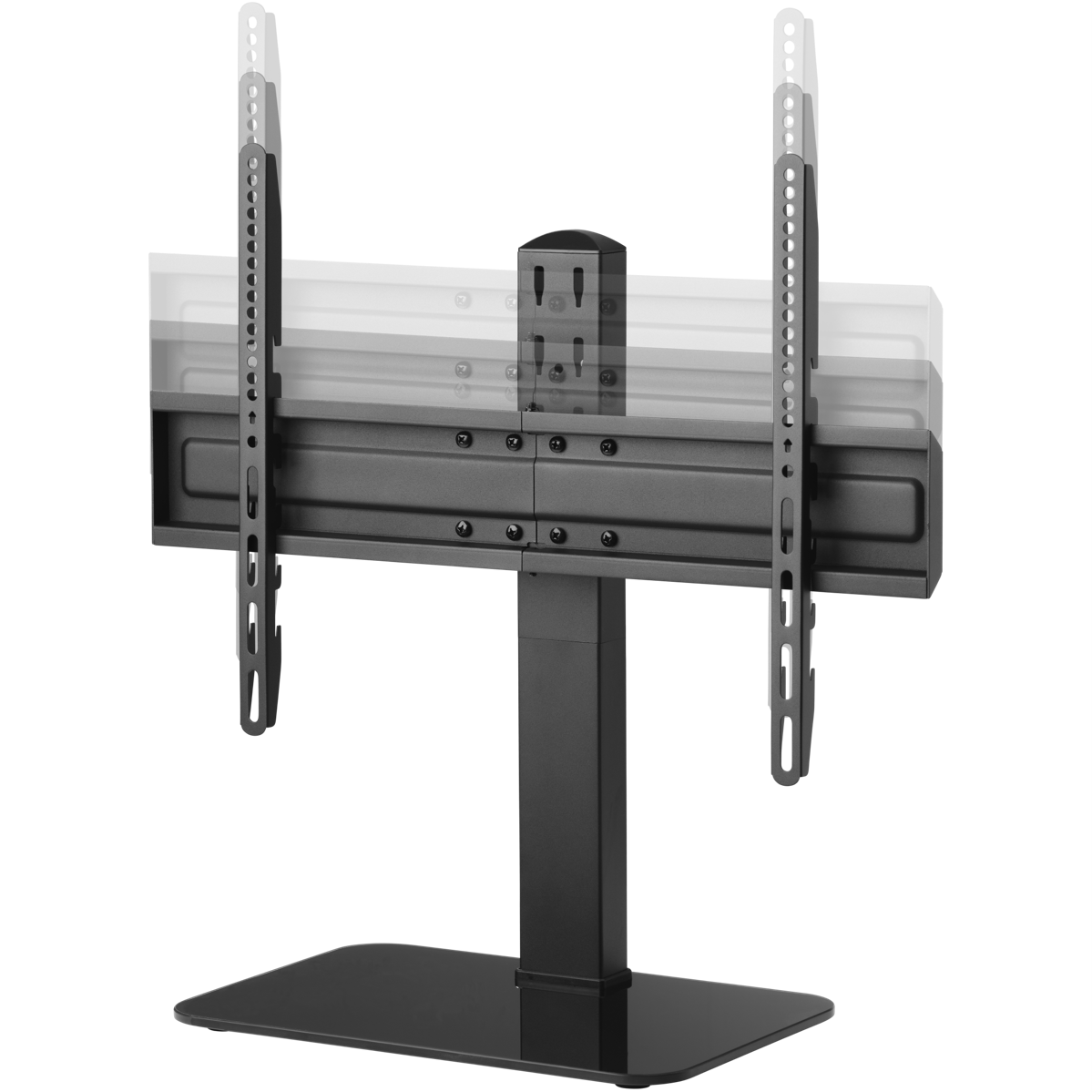 Take control of your living room with the One For All Universal Tabletop TV Stand designed to support televisions up to 70 and weighing up to 40kg. Crafted from sturdy steel with a sleek black finish this stand elevates your display for optimal viewing while keeping cables neatly tucked away for a clean look. The open shelves provide convenient storage for media players soundbars and more. Adjustable feet allow you to find the perfect level surface while an integrated bubble level ensures your TV is perfectly positioned. With a width of 280mm height of 770mm and depth of 640mm this compact stand fits into any space while providing ample support for larger displays. The anti-scratch pads protect your furniture and TV from damage. Assembly is quick and straightforward with the included instructions and hardware. Rest assured this tabletop TV stand comes with a 10 year manufacturer's warranty so your purchase is protected. Bring your living room entertainment to new heights with the One For All TV stand.