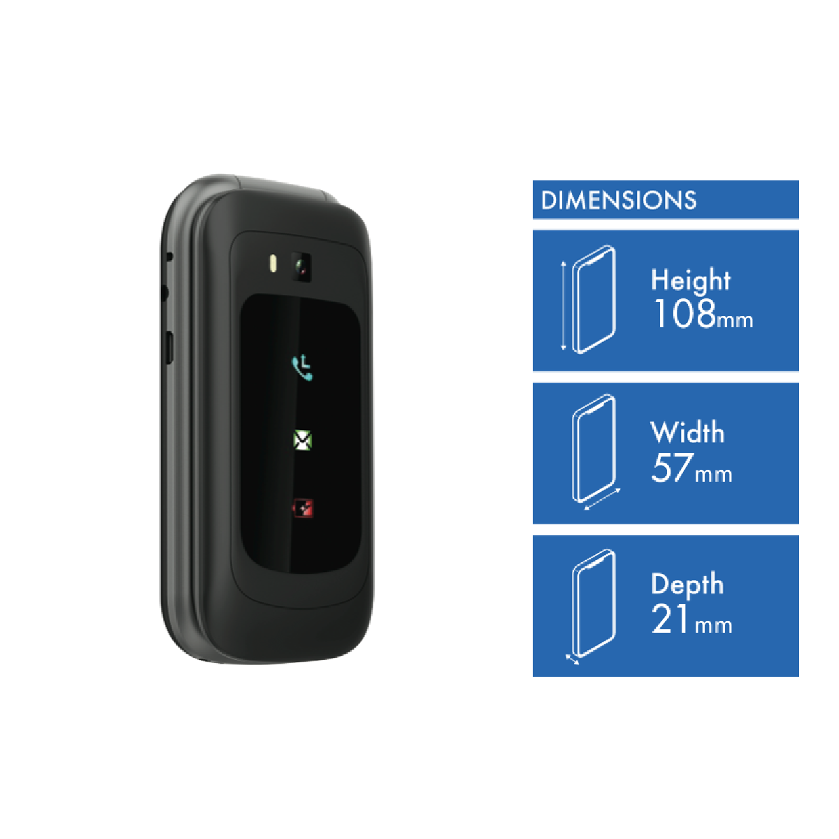 Stay connected on the go with the Opel TouchFlip 4G flip mobile phone. This stylish phone packs the power of 4G technology into a compact flip design. The large 2.8 inch color touchscreen makes web browsing and viewing photos a breeze. Capture memories with the 2MP front and .3 rear camera. With up to 32GB of expandable storage 512MB RAM and Android 8.1 OS you'll have plenty of room for apps media and more. Built-in Wi-Fi keeps you linked up while Bluetooth enables wireless streaming. The long-lasting 1400mAh battery allows for hours of talk time. Weighing just 130g and measuring 57x21x108mm the Opel TouchFlip slips easily into a pocket or bag. Available in classic black this unlocked phone works with standard micro and nano SIM cards so you can use your preferred carrier. Stay in touch in style with the feature-packed Opel TouchFlip 4G flip mobile phone. The manufacturer's part number for this product is 5473426. Check out this versatile phone today!