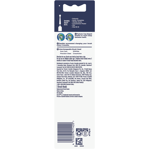 Additional Features Oscilating Rotating Replacement Refill, Floss \action bristles, New bristle technology, Turns yellow when its time to change the brush head