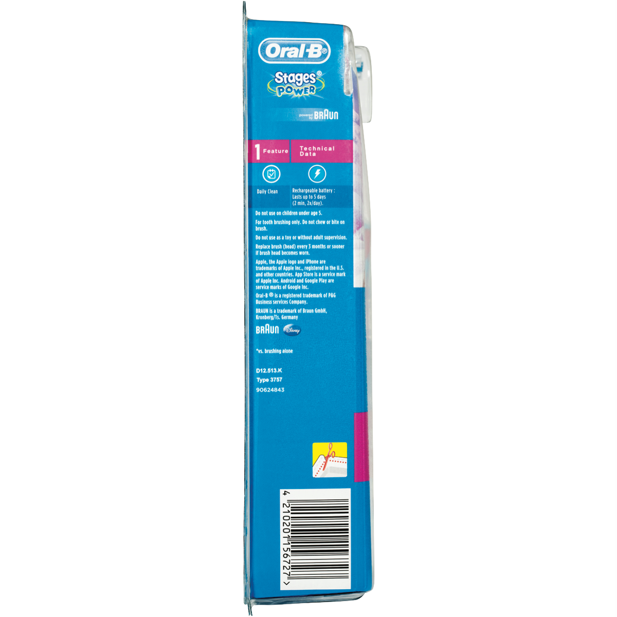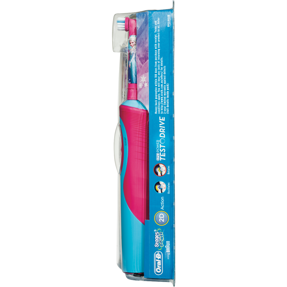 Bring fun and joy to your child's toothbrushing routine with the Oral B Vitality Kids Stages Frozen electric toothbrush. This rechargeable kids toothbrush features Bluetooth connectivity to the Oral-B kids disney magic timer app for interactive brushing guidance. With soft bristles gentle on young gums and a built-in timer it encourages proper brushing technique. The Frozen character design gives your child their favorite Disney pals to brush with. Compatible with all Oral B brush heads the Vitality Kids delivers vitality for your child's dental health. Backed by the Oral B name this electric toothbrush promotes healthy brushing habits. The manufacturer's part number for this product is VITALITYKFR. Give your child the gift of good oral care - order today.