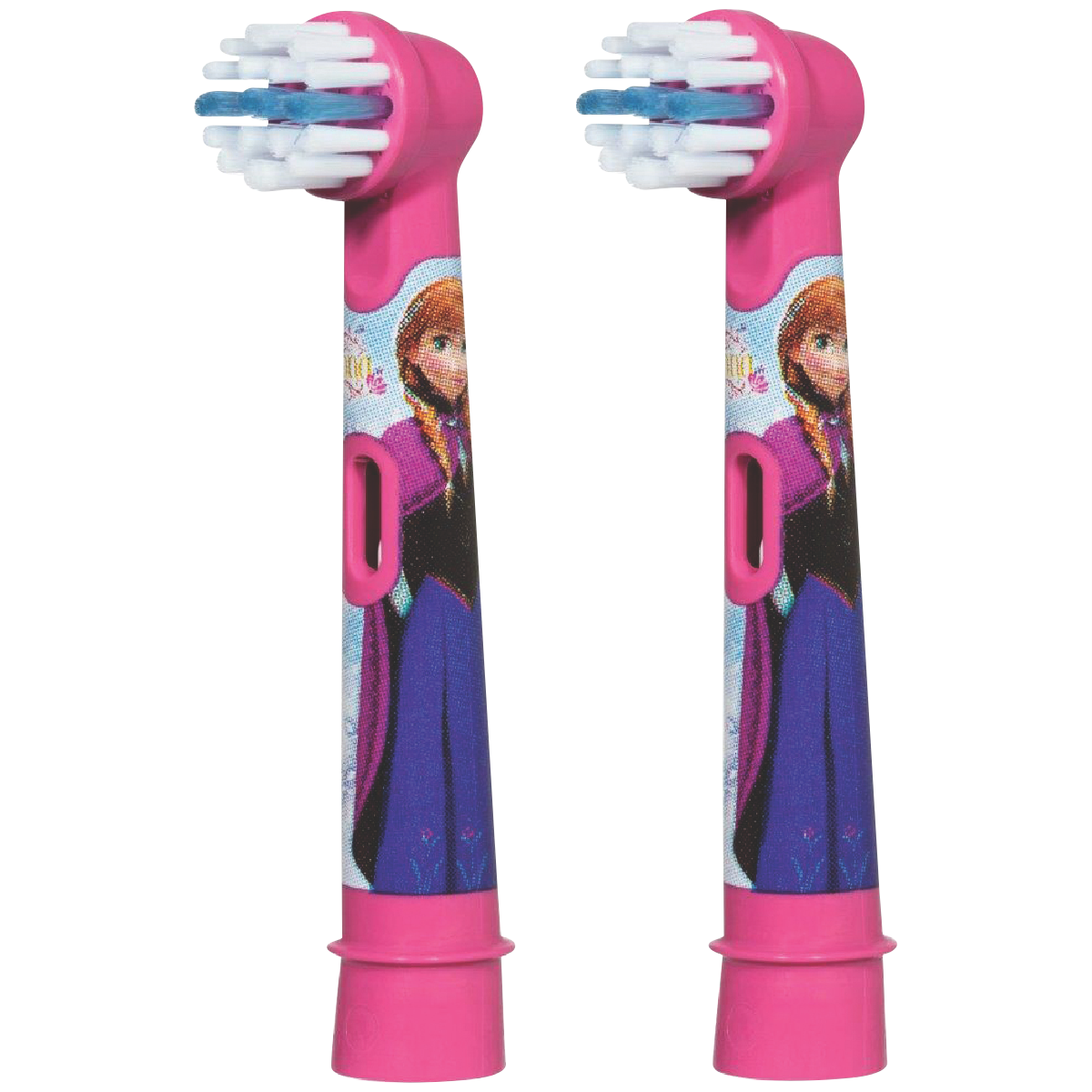 Bring Frozen magic and fun to your child's brushing routine with the Oral B Vitality Kids Stages Refill Frozen replacement brush heads. These soft gentle brush heads feature beloved Disney Frozen characters to make brushing a magical experience. The two included brush heads fit all Vitality electric toothbrushes providing a comfortable clean that's easy on young gums. With Oral B's stain removal technology the Frozen brush heads remove more plaque than a manual toothbrush for healthier teeth and gums. Give your child the gift of proper oral care with a toothbrush they'll look forward to using. Regular brush head replacements every 3 months ensure your child always has the most effective clean. The manufacturer's part number for this product is VITFRZNREFILL. Upgrade your child's oral hygiene today.