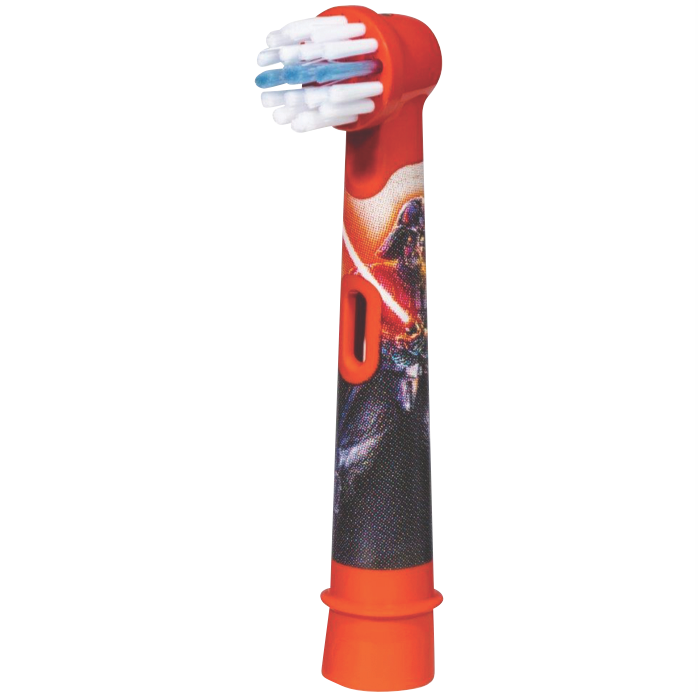Bring the Force to your child's oral care routine with the Oral B Vitality Kids Stages Refill Star Wars Toothbrush Heads. These soft gentle brush heads feature fun Disney Star Wars characters to make brushing engaging for kids. The compact heads clean effectively while remaining gentle on young gums. Designed to fit all Oral B electric toothbrush handles these replacement heads deliver a comfortable clean. The pack includes 2 brush heads providing a 6 month supply when used as directed. With Oral B's stain removal technology these brush heads remove plaque and surface stains for noticeably whiter teeth. Encourage your child to brush thoroughly and have fun doing it with the Oral B Vitality Kids Stages Refill Star Wars. The manufacturer's part number for this product is VITSWREFILL. Give your kid's oral health a boost with these special edition brush heads today.