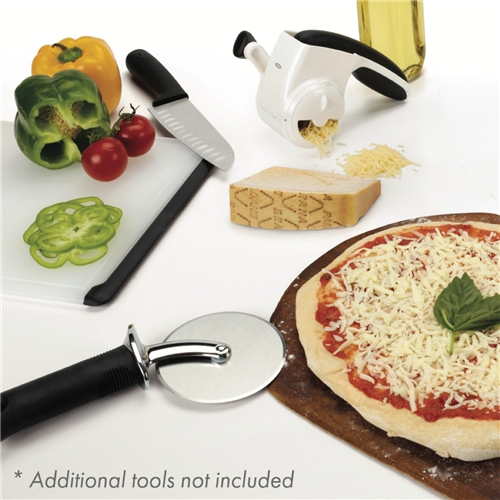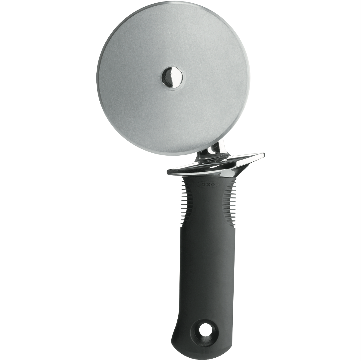 Slice and serve pizza with ease using the OXO Good Grips 4 Inch Pizza Wheel. This stainless steel kitchen tool features a soft non-slip grip that provides comfort while cutting through pizza crusts with minimal effort. The sharp circular blade glides smoothly to create clean cuts without tearing or ripping your pizza slices. The compact 4 inch size and ergonomic handle design allow you to maneuver the pizza cutter around plates and pans with control. Whether dividing up a large supreme pizza for the family or slicing individual pizzas for a party this pizza slicer wheel makes portioning simple. The stainless steel construction is durable for lasting use and the pizza cutter is conveniently dishwasher safe for fast cleanup. With its sharp cutting edge and comfortable grip the OXO Good Grips Pizza Wheel takes the hassle out of slicing pizza. The manufacturer's part number for this product is 48152. Check out this quality pizza cutter for easy pizza portioning.