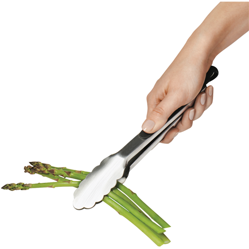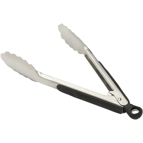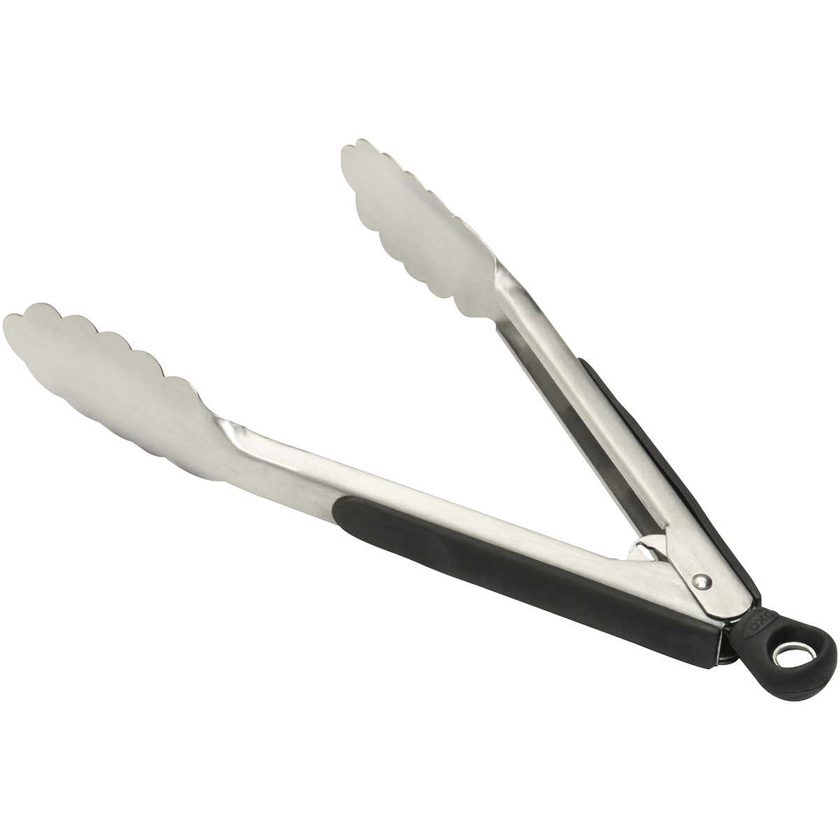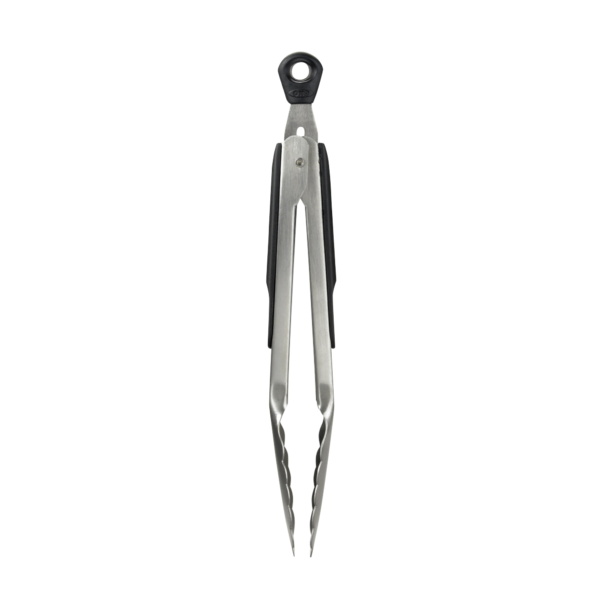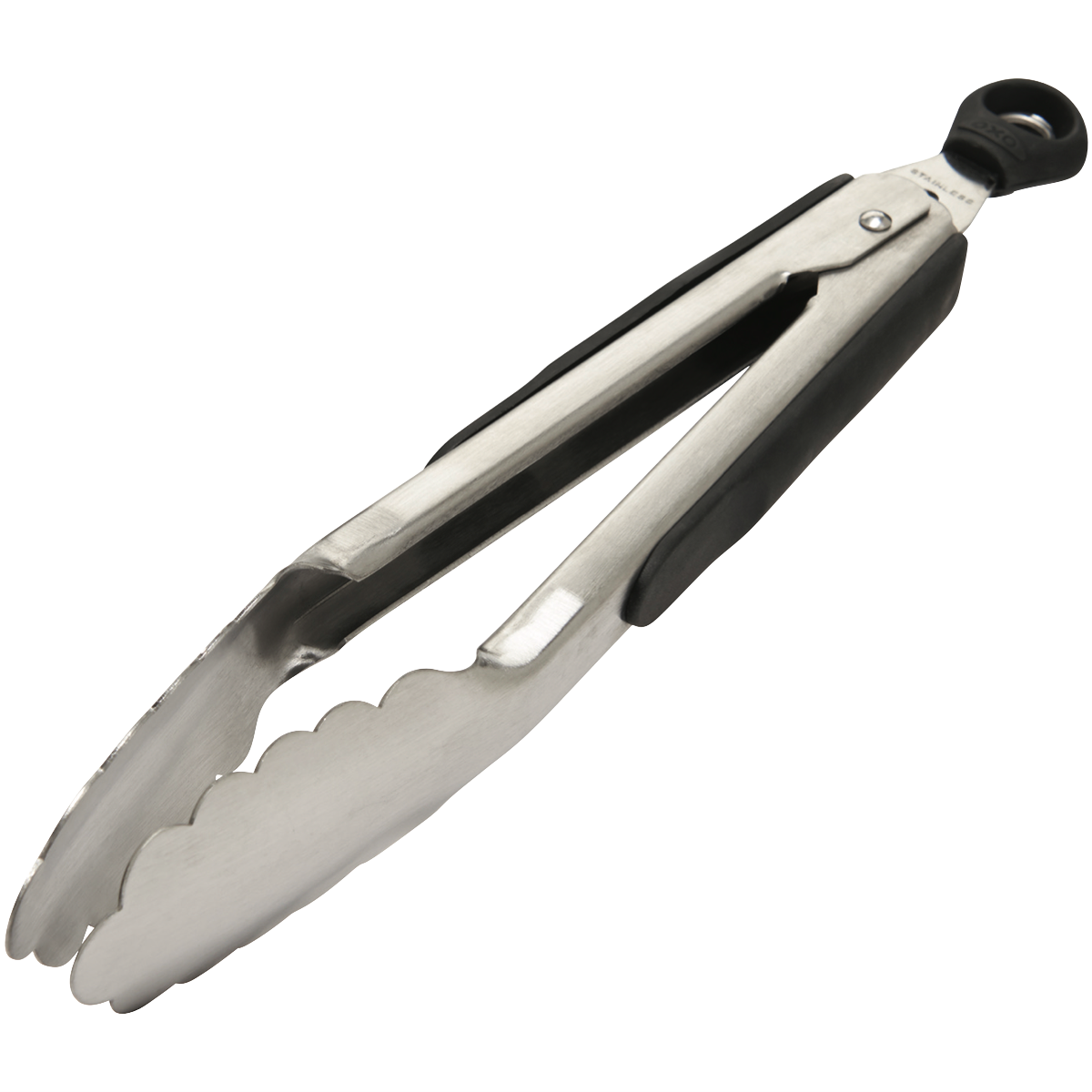 Take control of your kitchen with the OXO Good Grips 9 Inch Stainless Steel Tongs. This versatile kitchen tool features a soft non-slip grip that allows you to securely and comfortably grasp food while cooking. The stainless steel construction ensures durability for lasting use while the dishwasher-safe design makes cleanup a breeze. With the ability to efficiently flip toss and serve a variety of foods these tongs will quickly become an essential for meal prep and serving. The non-stick coating prevents food from sticking as you cook making these tongs great for handling meats vegetables and more. Lightweight yet sturdy the OXO Good Grips Tongs offer superior control when cooking grilling or plating food. Upgrade your kitchen tools with these well-designed stainless steel tongs. The manufacturer's part number for this product is 48372.