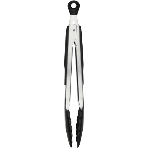 Take control of your kitchen with the OXO Good Grips 9 Inch Tongs with Nylon Heads. These stainless steel and black tongs are a versatile kitchen tool that make cooking and serving easier. The soft non-slip grip provides comfort while the heat resistant nylon heads protect hands from high temperatures. Perfect for tossing salads turning meat and serving pasta these tongs keep hands safely away from hot pans and oven racks. The stainless steel construction ensures durability while the dishwasher safe design allows for easy cleanup. With a secure lock compact size and lightweight feel the OXO Good Grips Tongs can be stored neatly in any kitchen drawer. Pick up a pair of these essential tongs to make meal prep a breeze. The manufacturer's part number for this product is 48376. Add this kitchen must-have to your cart today.