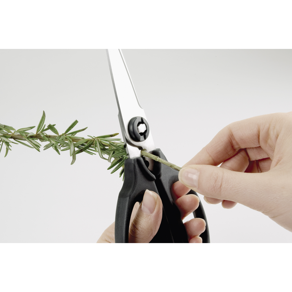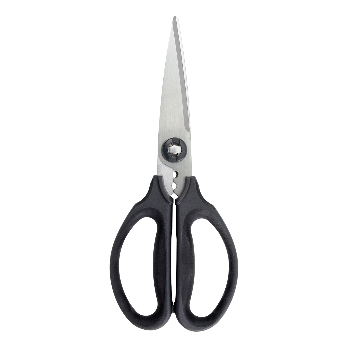 Slice and dice with precision using the OXO Kitchen and Herb Scissors. Crafted with stainless steel blades and soft non-slip grips these kitchen shears allow you to comfortably and safely prep ingredients. The micro-serrated blades effortlessly cut through foods while the sharp pointed tip lets you cleanly trim herbs and stems. At just 147 grams these lightweight yet durable scissors are easy to control and maneuver. With its compact size rounded handles and finger rests this essential kitchen tool provides superior control for mincing snipping and chopping tasks. From cutting meat and slicing vegetables to opening food packages this versatile pair of scissors will be your new go-to. For lasting performance OXO stands behind these quality kitchen shears with a limited lifetime warranty. The manufacturer's part number for this product is 48430. Add this kitchen multitasker to your cart today.