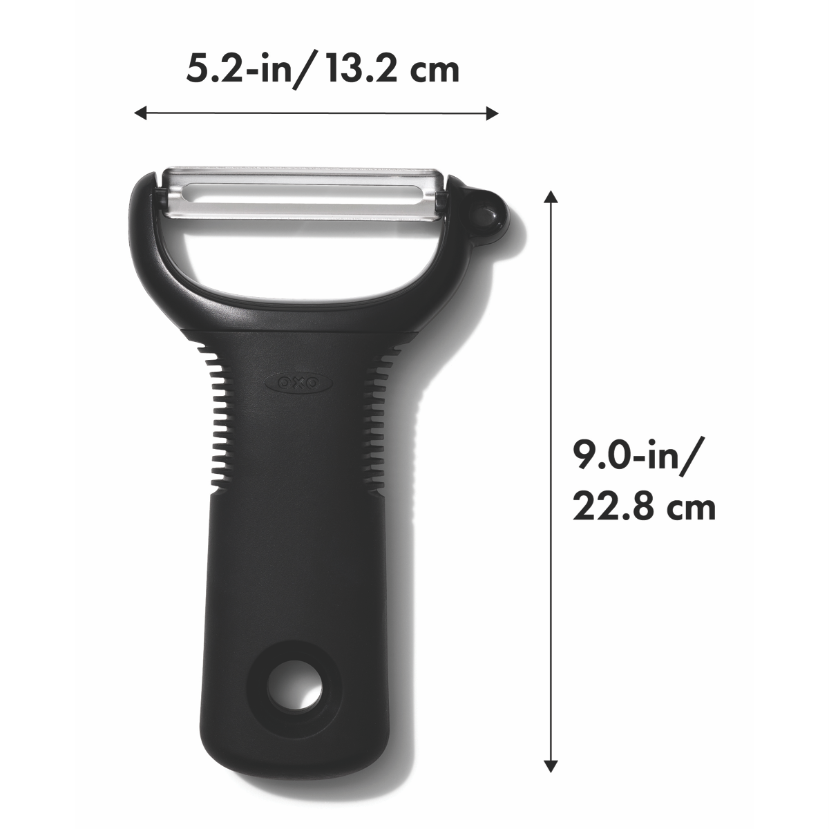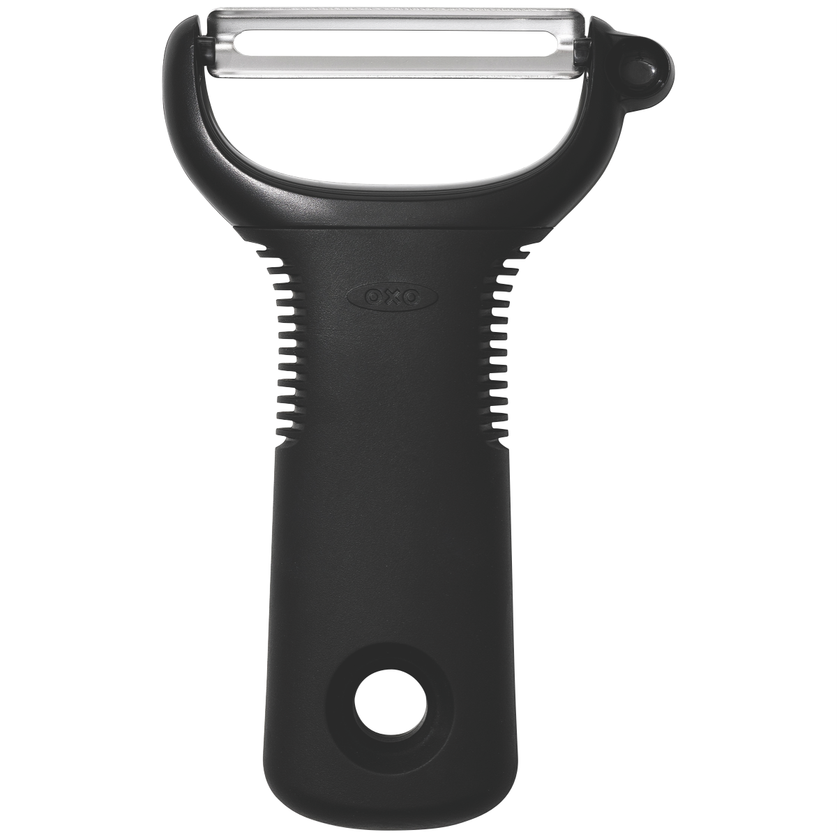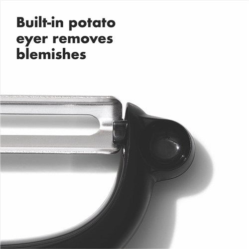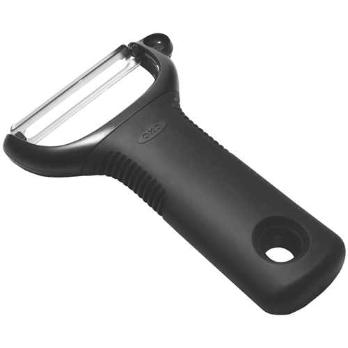 Slice and dice with ease using the OXO Good Grips Y Peeler. This essential kitchen tool features a soft non-slip grip that allows you to peel with comfort. The stainless steel blade glides smoothly through fruits and veggies to create perfect strips and shreds. With its sleek black and stainless steel design this peeler adds function and style to your kitchen. Dishwasher safe for easy cleanup. The lightweight but durable construction ensures this peeler will be a kitchen staple for years to come. Prepare healthy meals and snacks faster with the help of the OXO Good Grips peeler. The manufacturer's part number for this product is 48004. Add this useful peeler to your kitchen today.