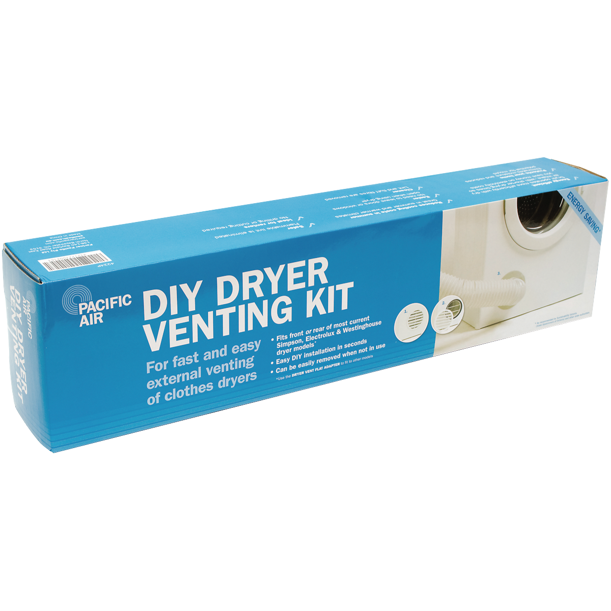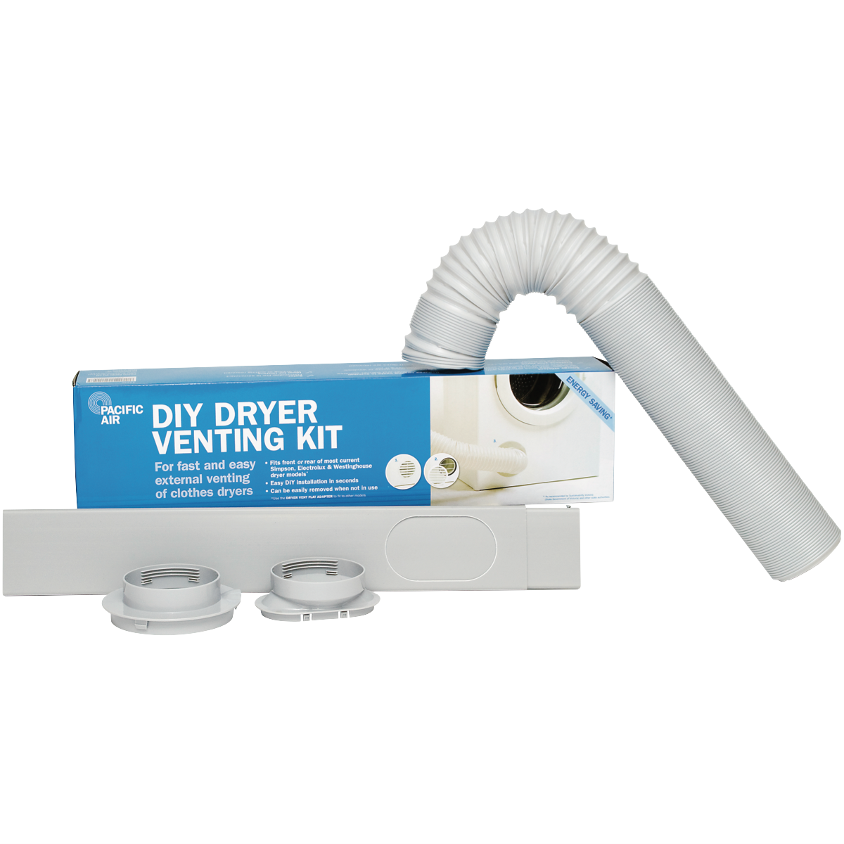 The Pacifica DIY Dryer Venting Kit is the perfect solution for venting your laundry room. This Australian made kit includes everything needed for a safe and efficient dryer installation. The expandable 2.4m polypropylene ducting adjusts to fit your space and the front cap adapter allows for a clean finish. The included window adapter and slider ensure proper ventilation to the outside. With durable components and straightforward DIY installation you'll have your laundry vented in no time. The manufacturer's part number for this product is 4224P. Contact us today to get the Pacifica venting kit that takes the hassle out of laundry venting.