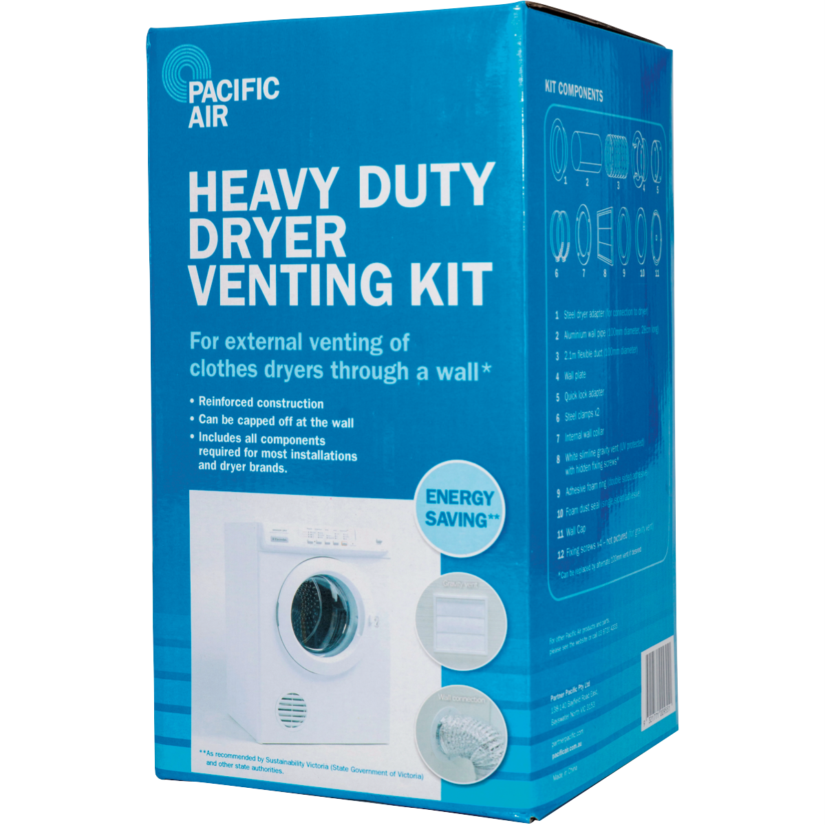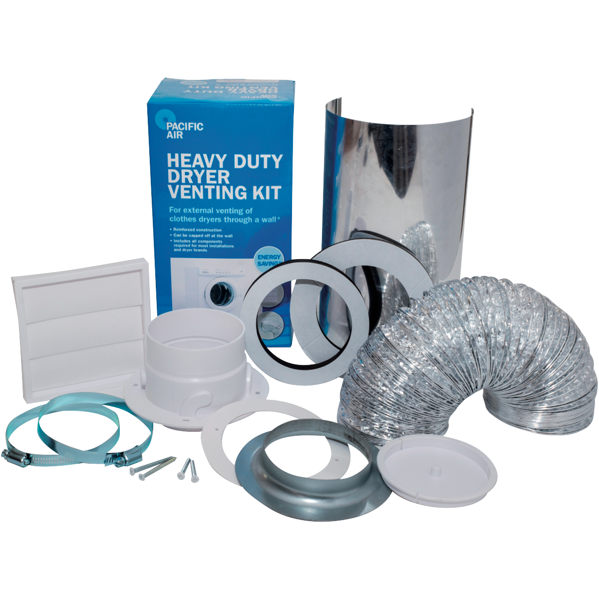 The Pacifica Dryer Venting Kit is an essential laundry accessory that keeps your clothes dryer operating safely and efficiently. This aluminium venting kit is designed for compatibility with most dryer models and includes a removable 280mm wall pipe and 100mm diameter adapter for easy installation. With this venting kit you can prevent lint buildup and moisture damage while improving air circulation and drying performance. The removable wall adapter allows for quick access when cleaning out the vent pipe to maintain optimal airflow. Keep your clothes drying quickly while avoiding potential fire hazards from lint accumulation with the Pacifica Dryer Venting Kit. The manufacturer's part number for this product is 4212P. Improve your laundry room setup with this well-designed venting accessory today.