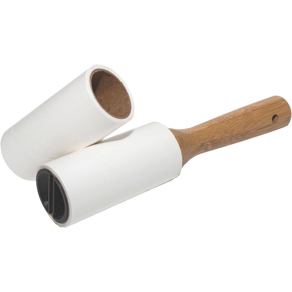 Tidy up your wardrobe and freshen up fabrics with the Pacifica Wooden Lint Roller. This handy lint removal tool features a natural wood finish and includes 58 sheets per roll to quickly remove lint fuzz and pet hair from clothing and upholstery. With a spare roll included you can keep lint under control and fabrics looking their best. The compact size is perfect for storing in a purse or glove compartment for lint removal on-the-go. Dual rollers make light work of removing stubborn lint and fluff from fabric. Visualize breathing new life into tired garments and furniture with a simple roll of this effective lint picker upper. Maintain a tidy pet hair-free household without harmful chemicals or sticky tape. The manufacturer's part number for this product is LR01. Add this lint removal essential to your cleaning toolkit today.