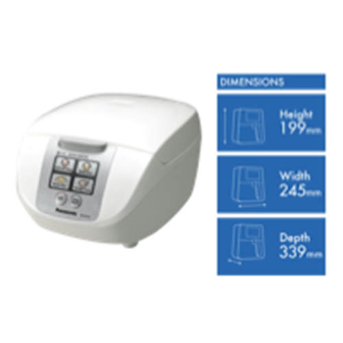 Additional Features Intelligently cooking rice, the Panasonic SRDF101WST 1L Rice Cooker’s fuzzy logic technology allows it to automatically adjust the cooking time and temperature to suit the ingredients to be cooked.