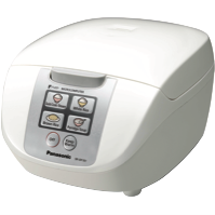 Cook rice perfectly every time with the Panasonic 5 Cup Rice Cooker. This white rice cooker features fuzzy logic technology that intelligently adjusts cooking time and temperature to suit the ingredients. With a 750W motor and a 5 cup capacity this cooker is ideal for individuals or couples who frequently prepare rice. The 4 menu programs for white quick brown and sticky rice make it easy to achieve the desired rice texture. Keep food warm after cooking with the convenient keep warm function. The removable steam basket allows you to steam vegetables or other ingredients while the rice cooks below. With a compact 199mm height 339mm width and 245mm depth this rice cooker is sized right for any kitchen. The nonstick inner pot is easy to clean by hand after use. Rely on Panasonic's 1 year warranty for peace of mind. The manufacturer's part number for this product is SR-DF101WST. Discover how simple preparing perfect rice can be with the Panasonic 5 Cup Rice Cooker.