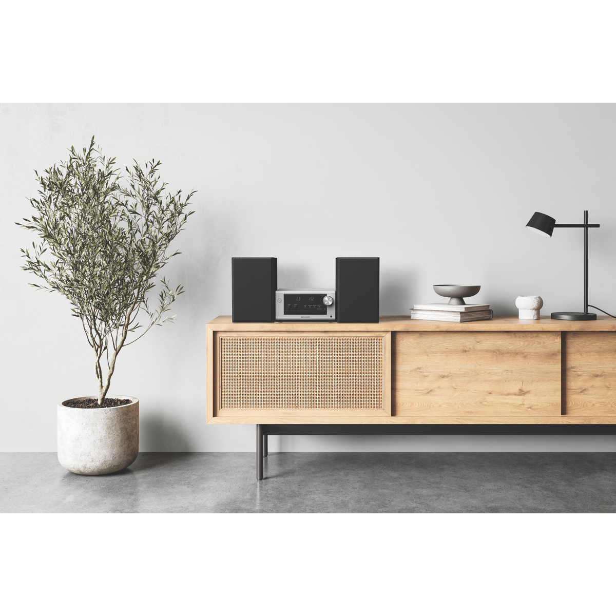 Step into the world of powerful clear sound with the Panasonic 80W Micro Audio System. This versatile 2-way hi-fi system delivers 80 watts of total output for room-filling audio from a compact design. Listen to CDs Bluetooth AM/FM radio or USB with a 2-speaker configuration featuring a 10cm woofer and 6cm tweeter with bass reflex port for enhanced lows. Customize your listening with multiple sound modes like D.Bass and Party or tune into your favorite stations with 30 FM and 15 AM presets. Connect devices via Bluetooth 4.2 or USB input. Use the remote control and built-in clock sleep and play timers for convenience. At just 2.2kg and measuring 114mm x 210mm x 261mm this micro system fits neatly into any living space. Enjoy your favorite audio hassle-free with 1 year warranty. The manufacturer's part number for this product is SC-PM700GN-S. Learn more about the Panasonic 80W Micro Audio System today.