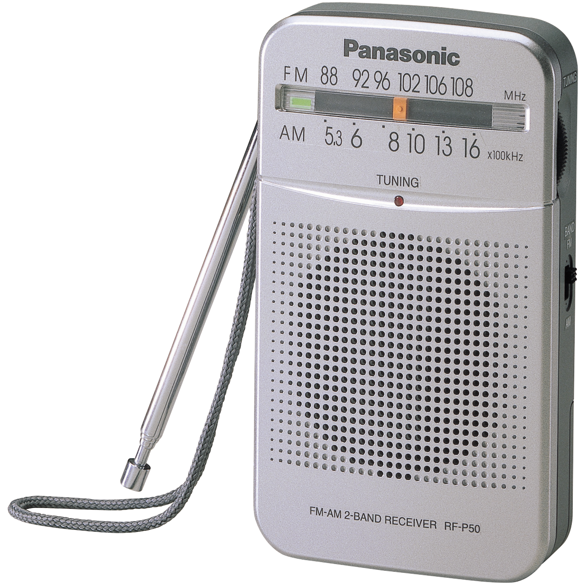 Take your favourite radio stations with you wherever you go with the Panasonic AM/FM Handheld Pocket Radio. This compact and lightweight radio delivers clear high-quality audio through its mono speaker while letting you easily tune into AM and FM stations on the go. With simple and stable tuning controls you can quickly find and preset your preferred station. The easy-to-see design makes operation a breeze while the included wrist strap ensures secure handling. Running on 2 x AA batteries this radio provides up to 150mW of total output power for solid sound. Measuring just 117.4mm x 29.7mm x 69.5mm and weighing only 111g the Panasonic AM/FM radio slips right into your pocket or bag. Key features like the compact size easy tuning and mono speaker allow you to enjoy radio entertainment anytime. Take your tunes on the go with confidence knowing this radio comes with a 1 year manufacturer's warranty. The manufacturer's part number for this product is RF-P50DGC-S. Check out the Panasonic AM/FM Handheld Pocket Radio today for portable audio you can take anywhere.