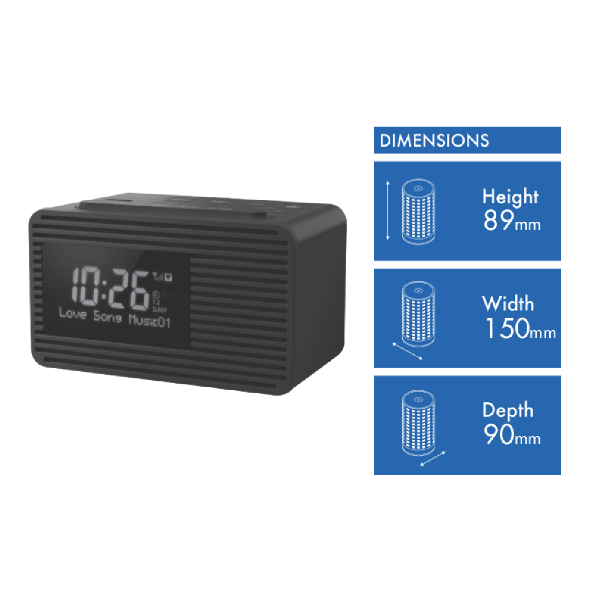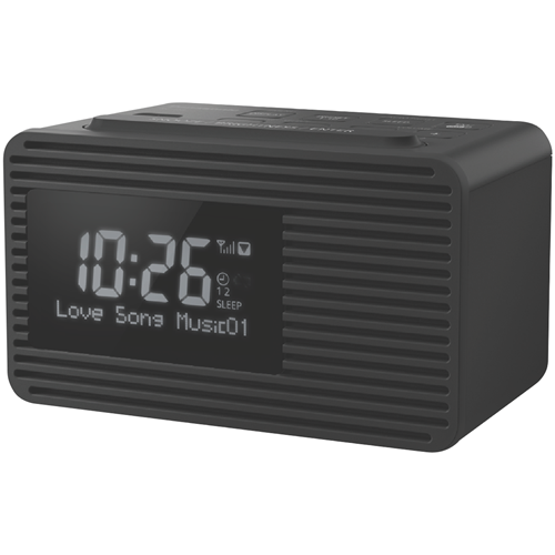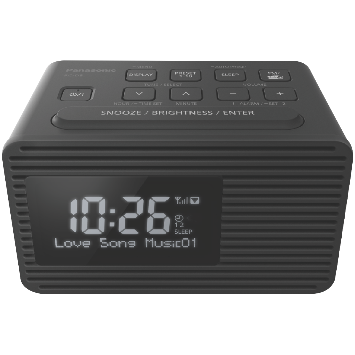 Drift off to your favorite DAB+ stations or wake up to your favorite FM radio shows with the Panasonic DAB+ FM Clock Radio. With 10 station presets and a clear LCD display this sleek black digital radio makes it easy to find and listen to all your favorite stations in crystal clear quality. The 5cm full-range speaker delivers rich 1W sound to fill your bedroom or kitchen. Set the dual alarm to wake up to the radio or buzzer. The built-in USB port lets you conveniently charge your smartphone overnight. With a lightweight compact design easy-to-use controls and 1 year manufacturer's warranty the Panasonic DAB+ FM Clock Radio is the perfect bedside or kitchen companion for all your music and talk radio needs. The manufacturer's part number for this product is RC-D8GN-K. Check out the Panasonic DAB+ FM Clock Radio today for quality digital radio performance.