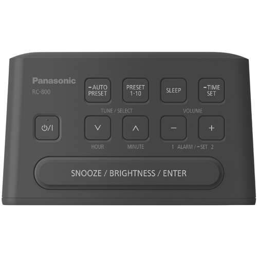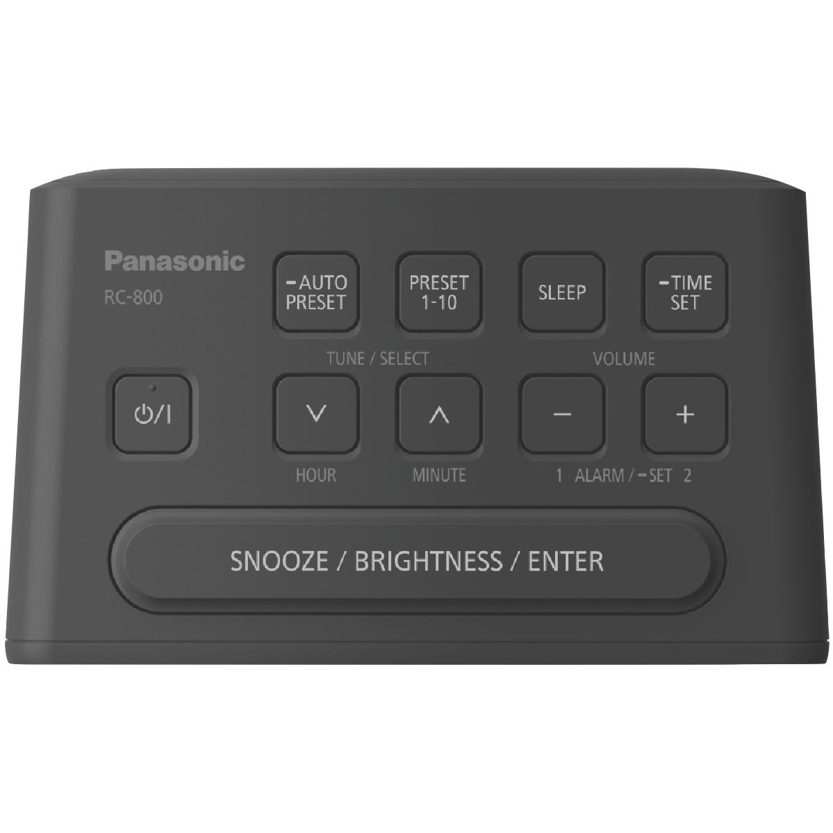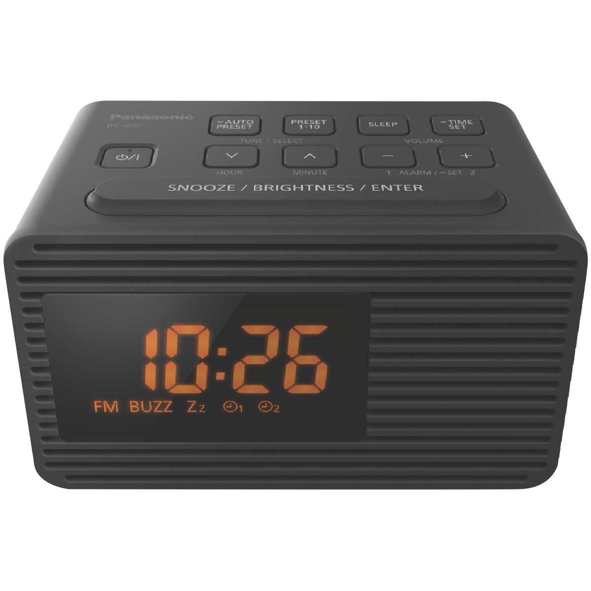 Wake up refreshed and informed with the Panasonic Dual Alarm Clock Radio. This compact clock radio packs a punch letting you preset 10 of your favorite FM radio stations between 87.5-108 MHz so you can start your day listening to the music or talkback you love. The large easy-to-read orange LED display ensures you'll never hit snooze again while the 5cm full-range speaker delivers warm rich sound. Equipped with dual alarm timers you can set separate wake-up times for weekdays and weekends. At just 89mm high 150mm wide and 90mm deep its space-saving design is perfect for bedside tables and desktops alike. Enjoy the convenience of a 1 year manufacturer's warranty. The manufacturer's part number for this product is RC-800GN-K. Discover how the Panasonic Dual Alarm Clock Radio can revolutionize your morning routine today.
