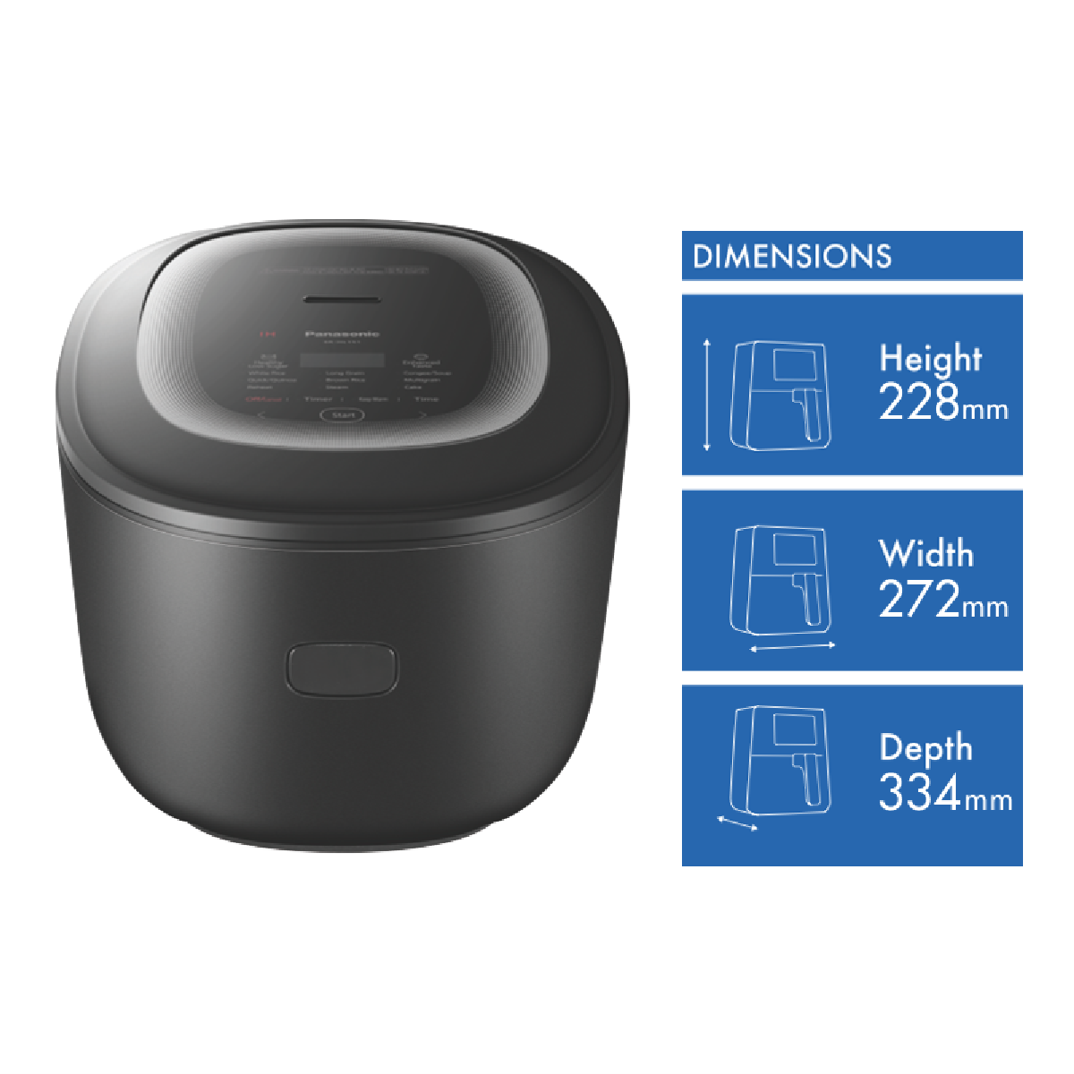 Experience restaurant quality rice and so much more in your own kitchen with the Panasonic Induction Heat Rice and Multi Cooker. This versatile 1.5L multicooker features 11 menu programs to cook healthy low sugar rice quick quinoa brown rice steam veggies make soup cake and more with just a press of a button. The innovative dual-layer induction heating separates starch from rice for fluffier grains while the durable non-stick inner pot allows for easy cleaning. With precise temperature control keep warm function for up to 5 hours 24 hour preset timer and automatic shut off this multicooker takes the guesswork out of cooking. The black stainless steel construction accented by Binchotan charcoal and fluorine coating lends an elegant look to any countertop. From cooking rice to baking a cake the Panasonic Induction Heat Rice and Multi Cooker delivers restaurant worthy results with fuss-free convenience. This multifunctional cooker includes a rice scoop soup scoop measuring cup and steaming basket. Covered by a 1 year manufacturer's warranty this is a versatile kitchen appliance built to last. The manufacturer's part number for this product is SR-HL151KST. Check out the Panasonic Induction Heat Rice and Multi Cooker to unlock endless cooking possibilities.