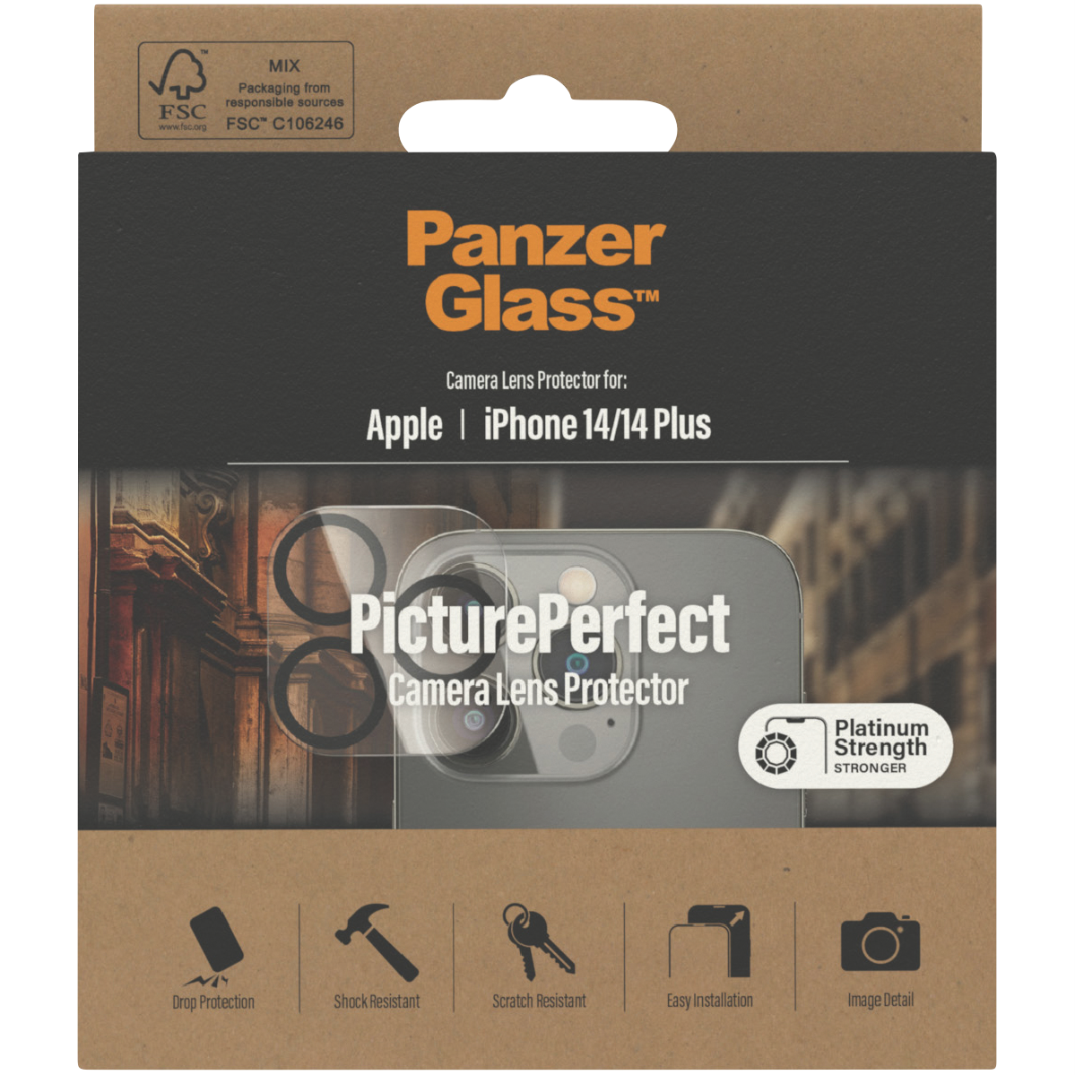 The Panzer Glass PictPerfect Camera Protection for iPhone 14/Plus provides peace of mind with its crystal clear durable screen protector designed specifically for your iPhone's camera. This transparent screen guard effortlessly shields your iPhone 14/Plus camera from scratches and scuffs while still allowing you to capture stunning photos and videos. With a slim profile that doesn't add bulk to your iPhone this protector is easy to apply and won't interfere with your phone's case. The tempered glass and oleophobic coating maintain your iPhone's original clarity and touch sensitivity for optimal everyday use. Backed by a 1 year manufacturer's warranty you can snap and record carefree knowing your iPhone's camera is shielded from harm. For iPhone 14/Plus owners who want to protect their investment the Panzer Glass PictPerfect Camera Protection is an affordable and effective safeguard for your iPhone's vulnerable camera lens. The manufacturer's part number for this product is 399.