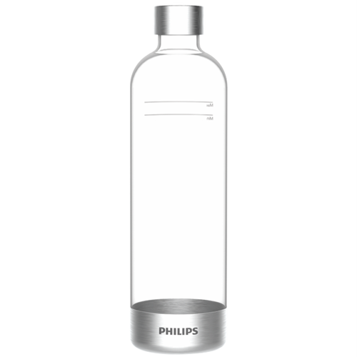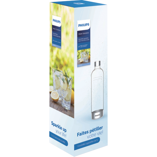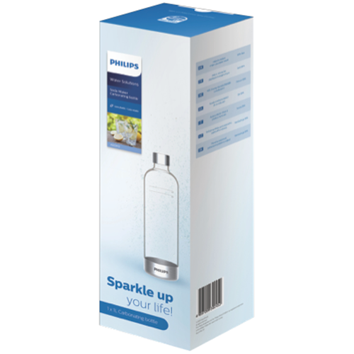Make your favorite sparkling beverages at home with the Philips 1 Litre Carbonating Bottle. This sleek drink mixer allows you to carbonate water and create fizzy drinks in seconds. With a 1 litre capacity you can make drinks for the whole family. The compact dimensions of 82.7mm x 82.7mm x 290.2mm mean this carbonator will fit perfectly on your kitchen counter or in the fridge door. Simply add water and CO2 to the bottle press the button and enjoy delicious carbonated water soft drinks juices and more. The quick carbonation process eliminates waiting around for your drink to be ready. Craft your own healthy flavored sodas using natural syrups and fruit juices too. Entertain guests with ease skipping the hassle and cost of buying premixed carbonated drinks. This handy appliance lets you personalize your beverages just the way you like them. Make refreshing drinks in a snap with the Philips 1 Litre Carbonating Bottle. The manufacturer's part number for this product is ADD912/79.