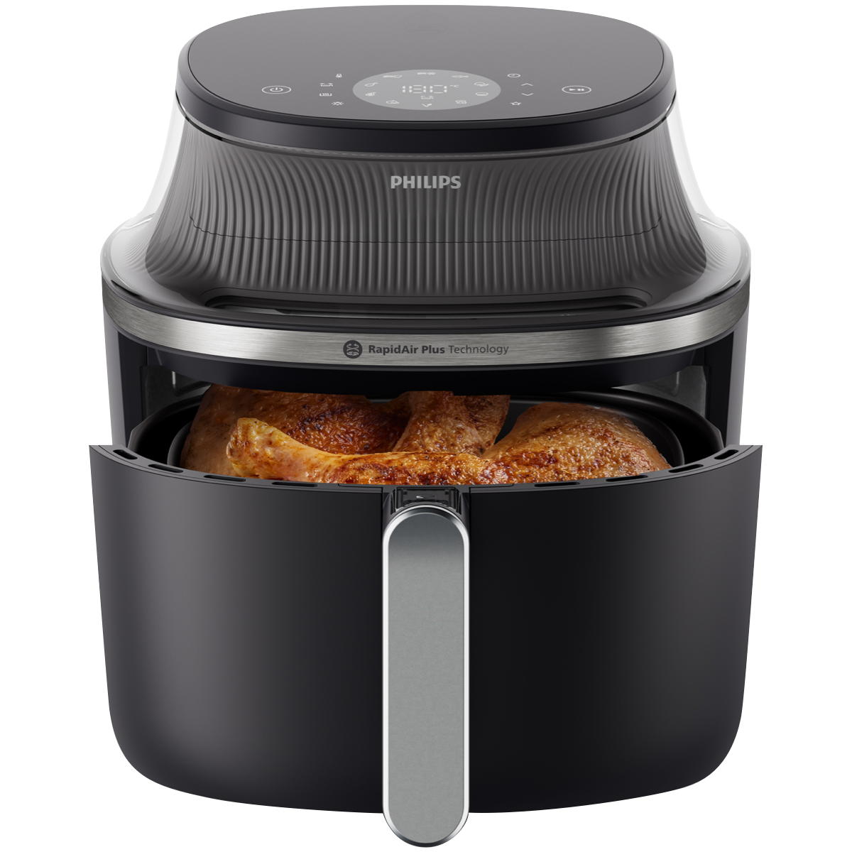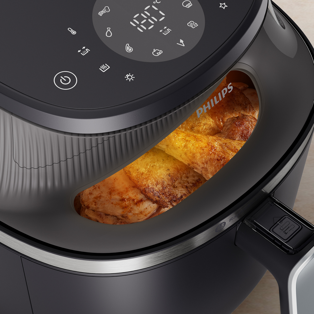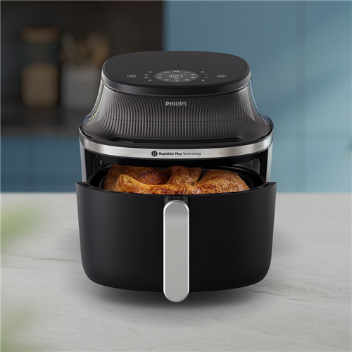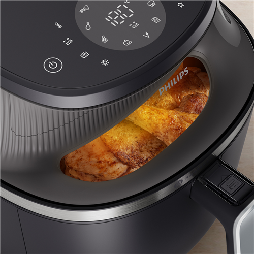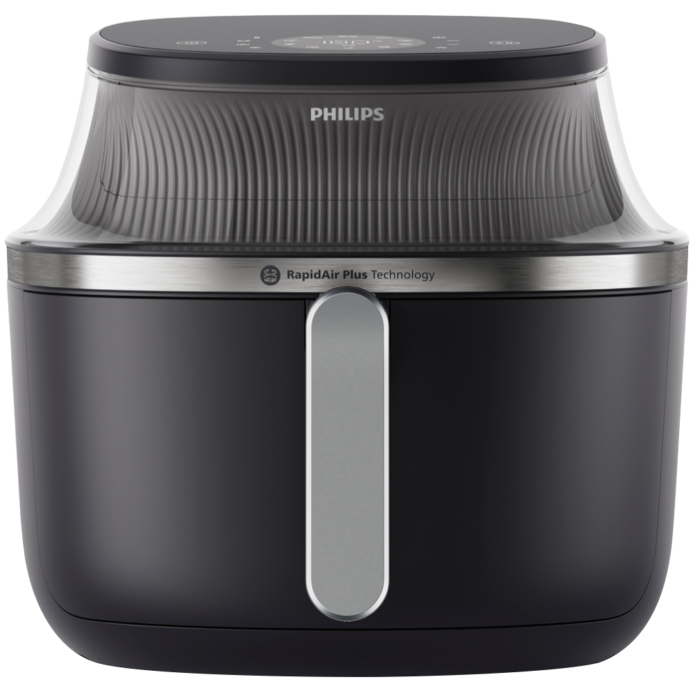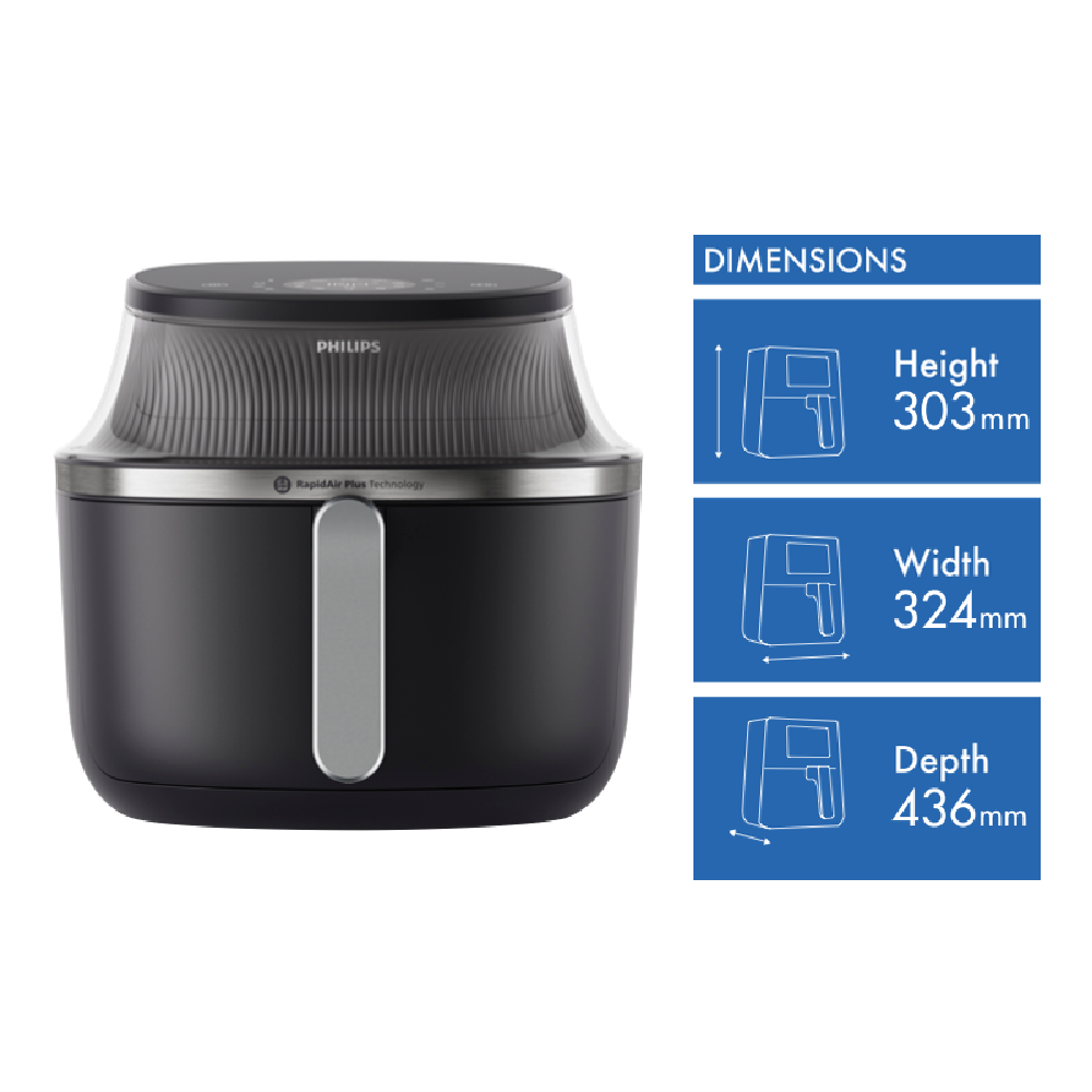 Cook healthier meals with this Philips 3000 Series 6.2 Litre Air Fryer XL in sleek black. Its RapidAir Plus Technology and 1700W power heat up to 200°C creating crispy results with minimal oil. Choose from 12 preset functions including frozen fries chicken drumsticks and even muffins to simplify your cooking process. The touch controls make operation intuitive while the cooking window lets you monitor your food without interrupting the cooking cycle. When you're done cleaning is easy with dishwasher-safe removable parts. Comes with a 2-year warranty. Model NA331/00.