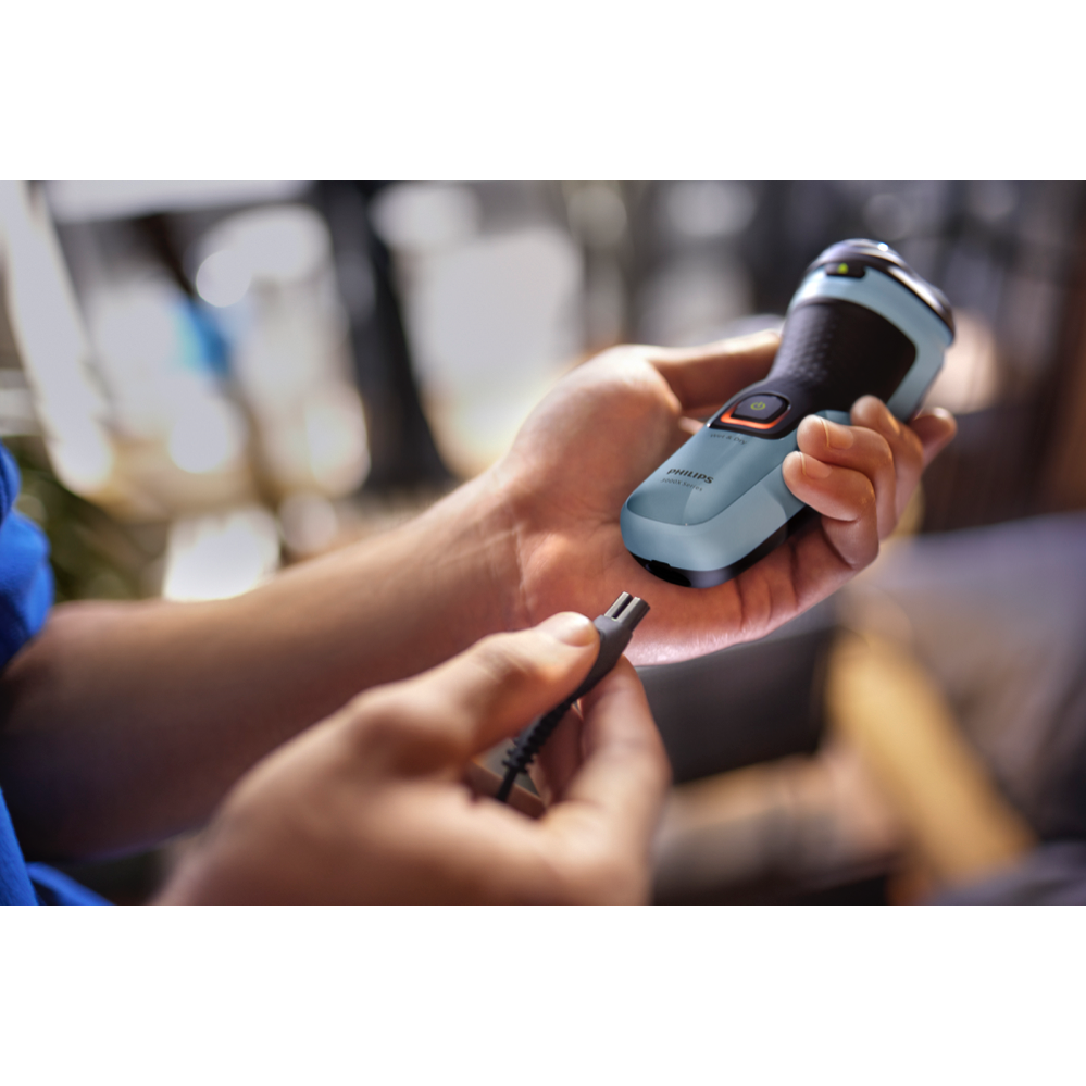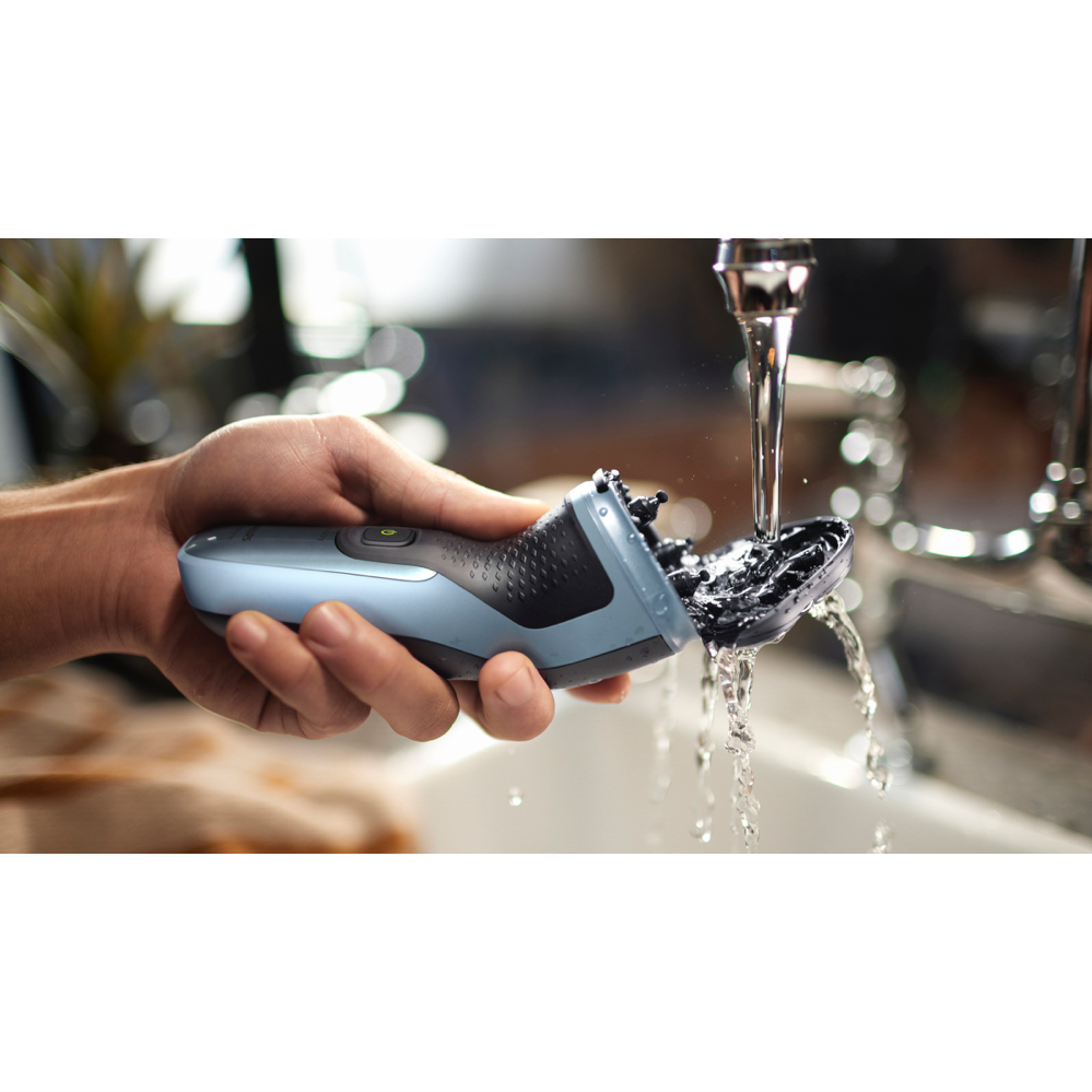 Ready for a shave that's smooth comfortable and effortless? The Philips 3000 Series Shaver X3063/00 in celestial blue is your go-to grooming companion. With 27 self-sharpening ComfortCut blades delivering 55000 cuts per minute you'll enjoy a close shave every time. The 4D Flex Heads follow the contours of your face while the Anti-Corrosion Shaving System ensures long-lasting performance. Enjoy the convenience of wet or dry shaving and easily trim your mustache and sideburns with the pop-up trimmer. The cordless design and anti-slip grip make shaving a breeze and with a 1-hour charge providing 45 minutes of runtime you'll have plenty of power for multiple shaves. Low on time? A 5-minute quick charge gives you enough juice for a full shave. Cleaning is a snap with the one-touch open feature. The Philips 3000 Series Shaver X3063/00 comes with a protective cap and a 2-year manufacturer's warranty giving you peace of mind with your purchase. Elevate your grooming routine and experience the difference of Philips shaving technology.
