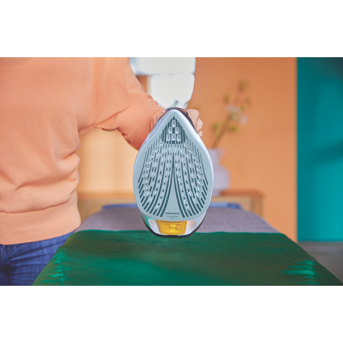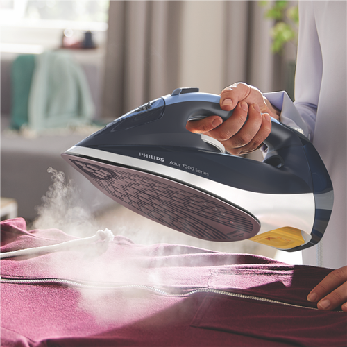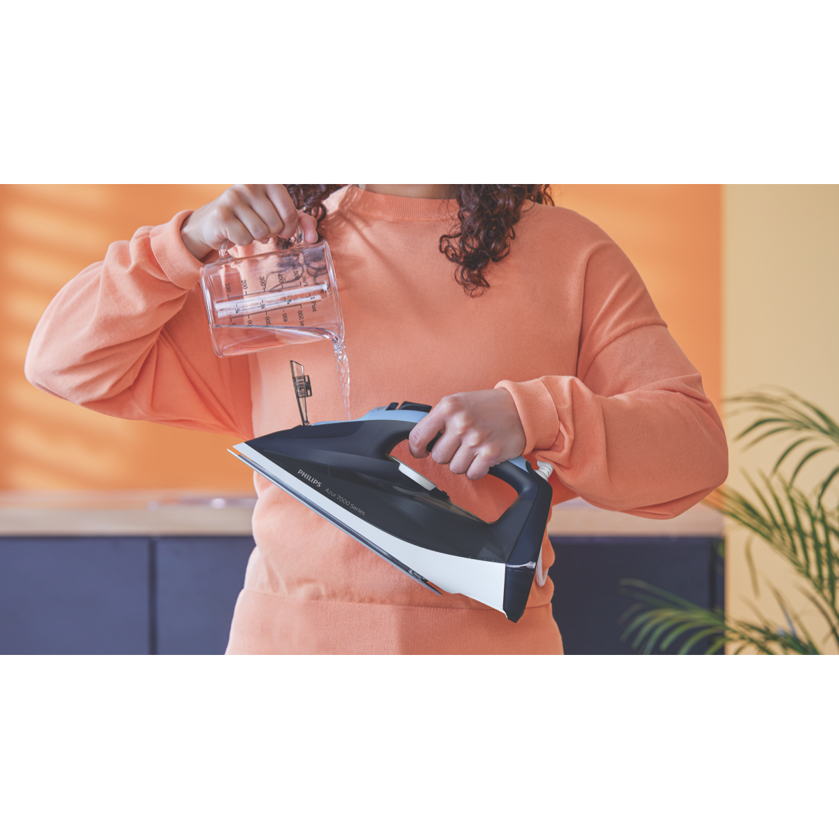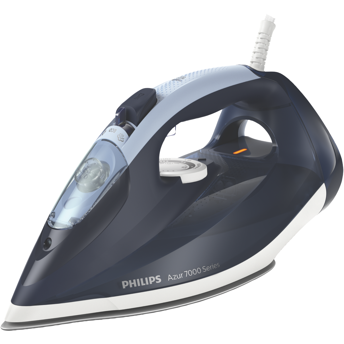 Get your laundry done faster and easier with the Philips 7000 Series Steam Iron. This powerful 2400W iron with 300ml water tank capacity provides 50g/min of continuous steam output and a 250g steam shot to tackle even the toughest wrinkles. The premium SteamGlide Plus soleplate with its dark blue colour glides smoothly over any fabric. With variable steam control vertical steaming spray mist function and a 2m cord length this iron is designed for convenience. The SteamGlide soleplate's 5 layer coating provides effortless gliding. Auto shut-off self-clean and calc-clean functions ensure safety and maintenance is hassle-free. With a 2 year warranty this feature-packed steam iron will be your go-to for all ironing tasks. The manufacturer's part number for this product is DST7030/20. Add this innovative Philips steam iron to your cart today for easy fast and crease-free ironing.