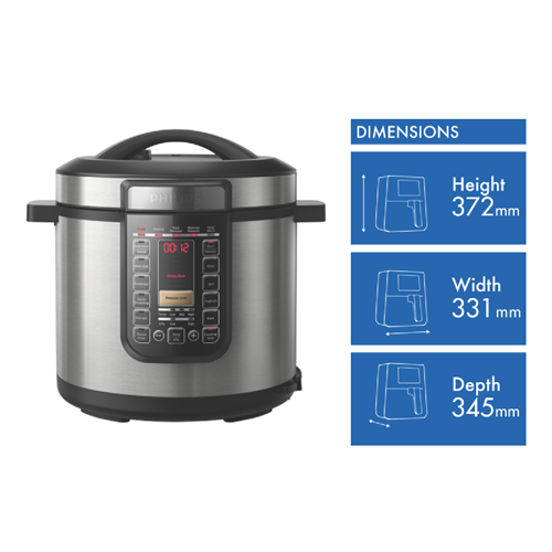 Whip up delicious home-cooked meals with ease using the Philips 8 Litre All-In-One Multicooker. This versatile silver slow cooker features a generous 8 litre capacity aluminium alloy pot with a ProCeramic+ non-stick coating perfect for preparing soups stews curries and more for the whole family. With an impressive 1500W of power and 20 preset programs so you can achieve the perfect result every time. The adjustable cooking functions allow you to pressure cook slow cook sauté steam and more. The inner lid design ensures mess-free serving while the 9 safety protection systems give you peace of mind. Measuring 331mm wide 372mm high and 345mm deep this multicooker will look great on any kitchen benchtop. Conveniently the pot and lid are dishwasher safe for easy cleanup. With a 2 year warranty you can purchase the Philips All-In-One Multicooker knowing it's built to last. The manufacturer's part number for this product is HD2238/72. Take your home cooking to the next level with this versatile 8 litre multicooker from Philips.
