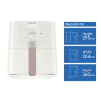 Cook healthier meals at home with the Philips Air Fryer Essential Compact. This compact yet powerful air fryer uses Rapid Air technology to fry your favorite foods with little to no oil reducing fat by up to 90% compared to traditional fryers. With its sleek white finish adjustable temperature up to 200°C 30 minute timer with auto shut-off and dishwasher safe parts for easy cleanup this 0.8kg capacity air fryer makes it simple to prepare crispy fried favorites like chips nuggets and more the healthier way. The Philips Air Fryer Essential Compact is your solution for fast convenient meals and snacks with less guilt. With 1400 watts of power you can quickly cook a variety of ingredients while its compact 264 x 295 x 360mm size takes up minimal counter space. The ready signal and power-on lights indicate when it's time to enjoy your meal. Give your diet a boost with the Philips Air Fryer Essential Compact. The manufacturer's part number for this product is HD9200/21. Check it out today and tomorrow for this product!!
