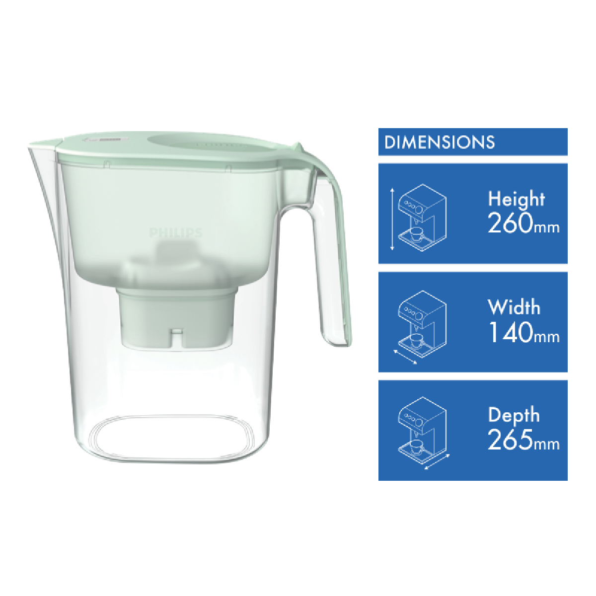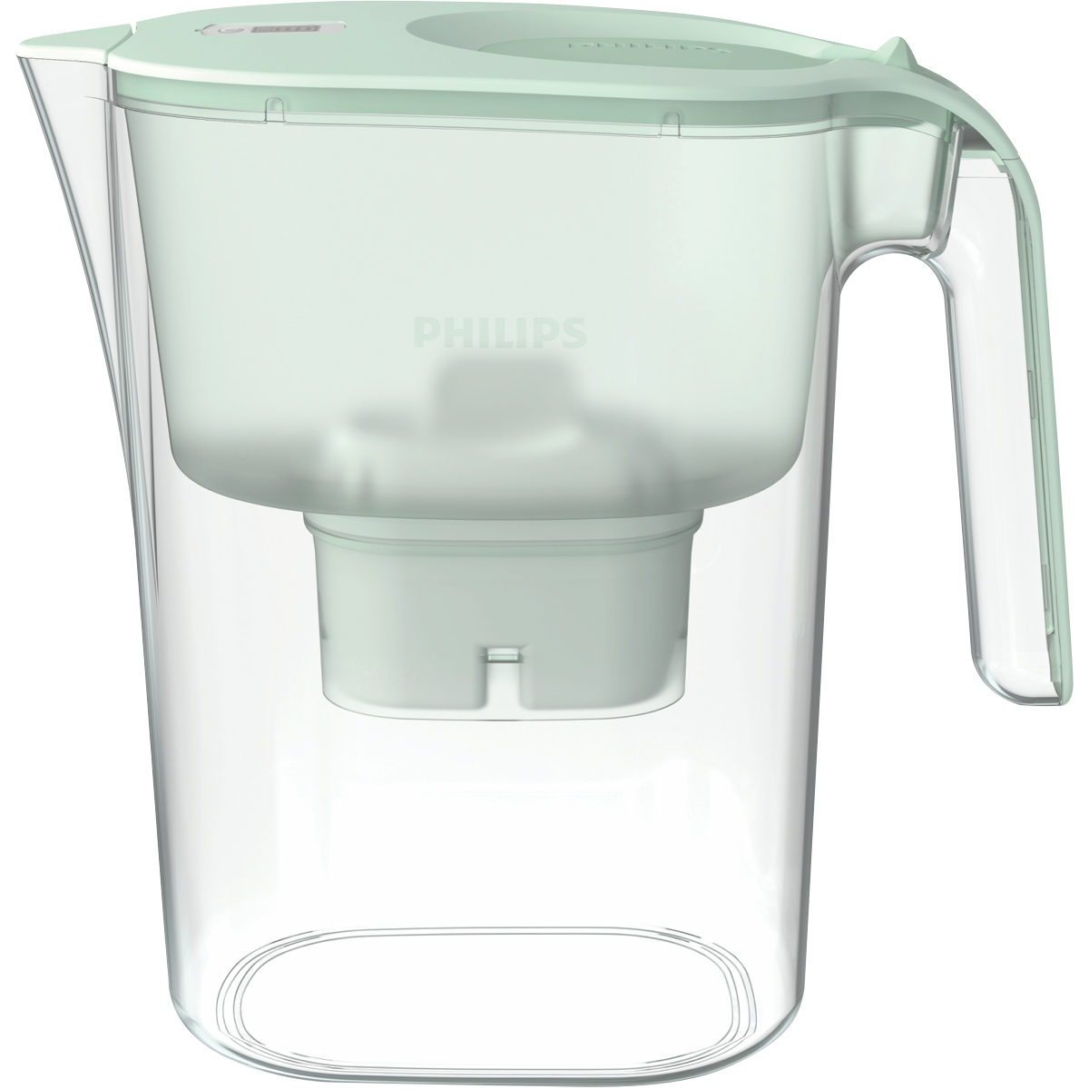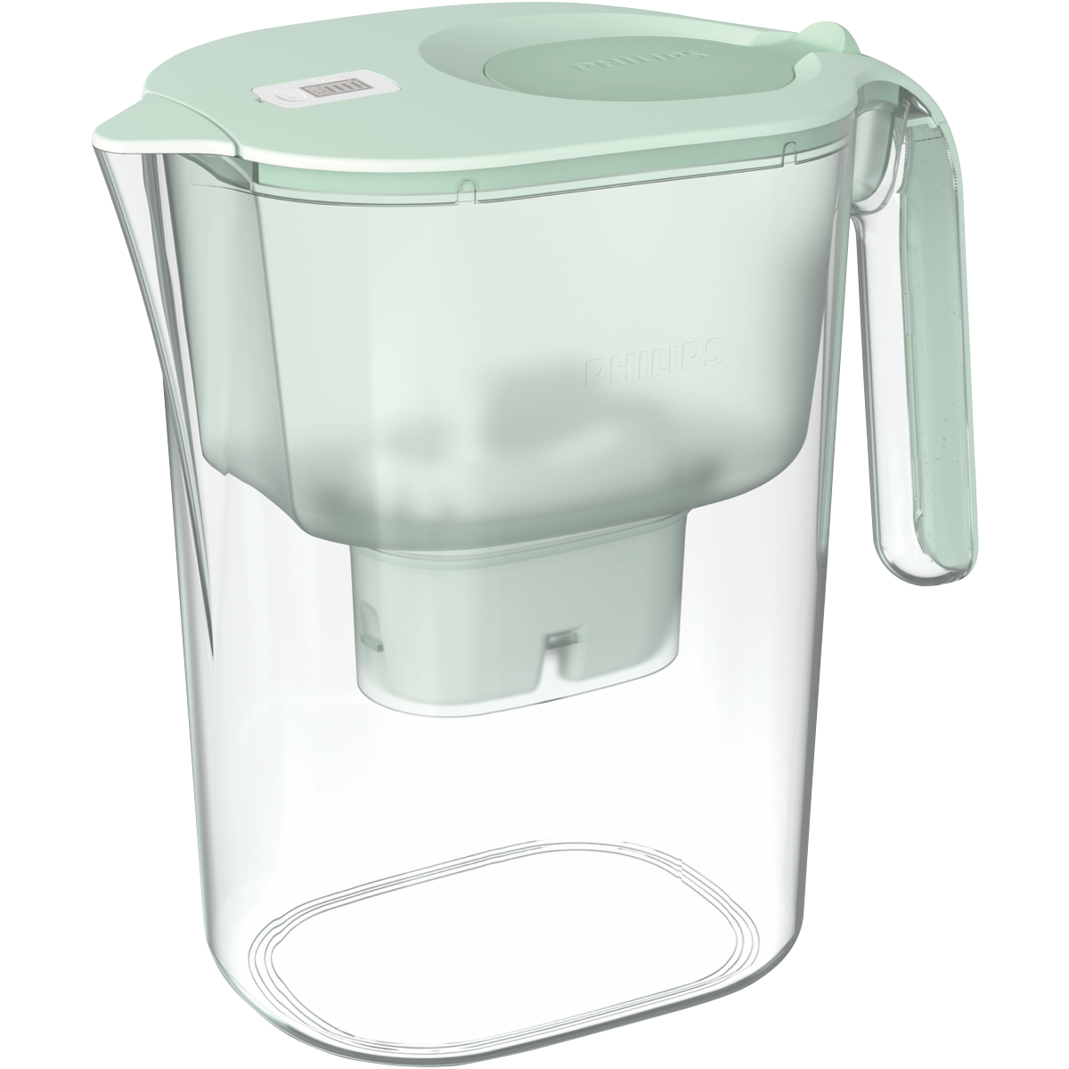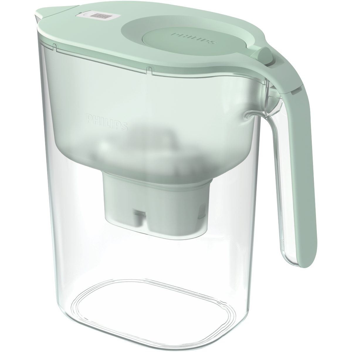 Quench your thirst with the Philips Filter Jug Square XXL 4.0L Green. This large filtered water jug has a generous 4 litre total capacity and filtered water capacity of 2.6 litres ensuring you always have cool clean water on hand. The flip top lid allows for easy one-handed refilling while the digital timer reminds you when it's time to replace the filter for optimal results. With its modern square design and translucent green hue this water jug is sure to be a stylish addition to any kitchen. The Philips filtration system reduces impurities leaving you with fresh great-tasting water straight from the tap. Stay hydrated throughout the day by enjoying chilled filtered water from this convenient jug. A 2 year manufacturer's warranty provides added peace of mind. The manufacturer's part number for this product is AWP2938GNT/79. Consider the Philips Filter Jug Square XXL 4.0L Green for filtered water on demand.