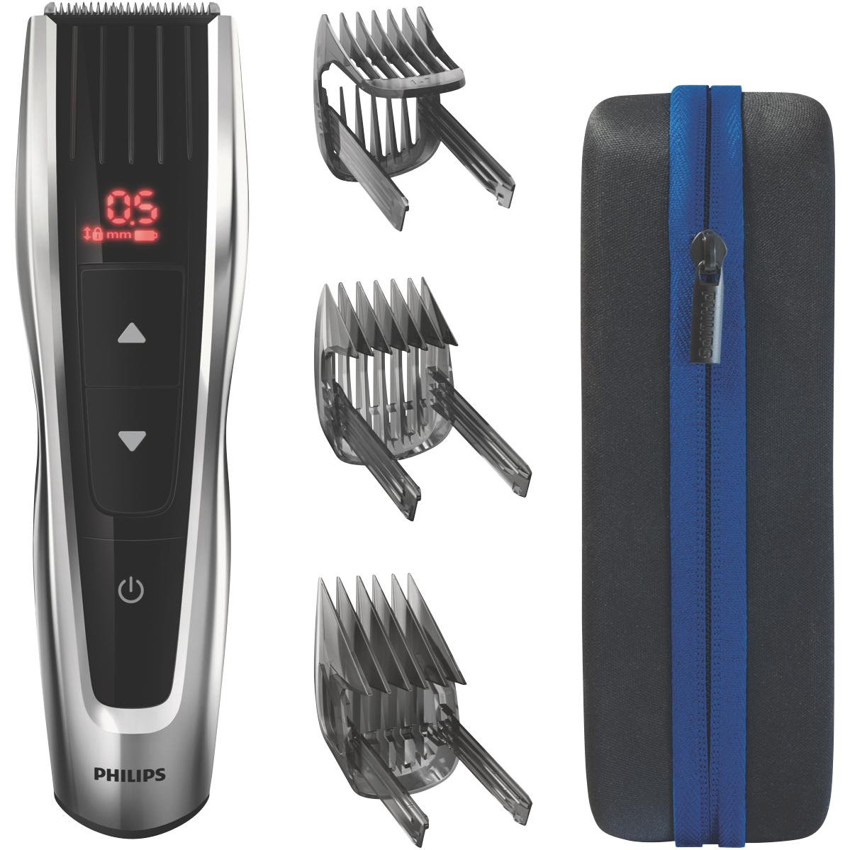 Achieve professional haircuts at home with the Philips Hair Clipper Series 9000. The chrome trimmer features stainless steel blades and a powerful auto turbo motor for precise smooth cutting. With 60 length settings from 0.5mm to 42mm you can create any style you want. The 0.2mm precision steps allow for ultra-fine adjustments. Cordless operation gives you flexibility while the Li-ion battery provides up to 1 hour of runtime per charge. Three adjustable combs and a travel pouch add convenience. The Philips hair clipper's durable motor and high-quality blades are built to last. Enjoy convenient salon-quality haircuts for the whole family. The manufacturer's part number for this product is HC9420/15. Check out the Philips Hair Clipper Series 9000 today for your at-home styling needs.