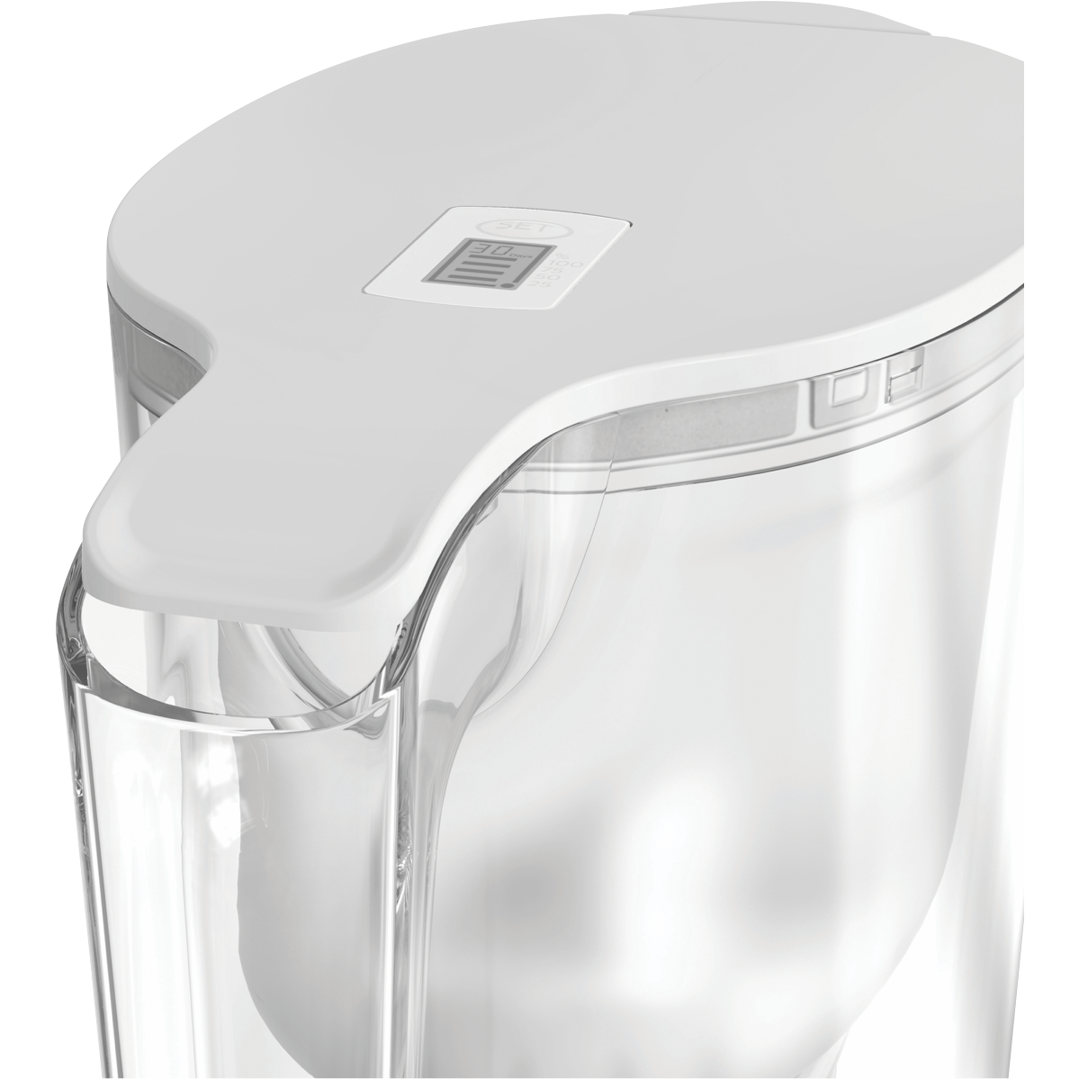 • Filtered water jug with bright white finish