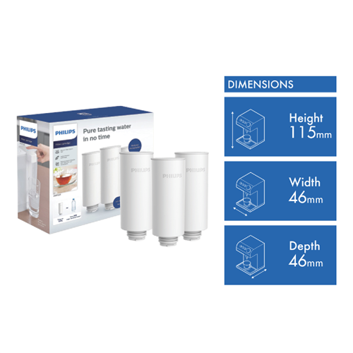Filtration made easy. The Philips Micro X-Clean Filter for Power Pitcher 3pk is an effective water filter cartridge that reduces microplastics for cleaner drinking water right at home. This convenient 3 pack of replacement filters fits specific Philips water pitchers to filter out microplastics chlorine taste and odor. Each filter cartridge lasts 1 month for fresh filtered water every day. Measuring 46x46x115mm these compact carbon filters conveniently twist into your compatible Philips water pitcher so you can enjoy cleaner-tasting water with ease. By reducing microplastics and other contaminants this filter leaves you with crisp refreshing H2O straight from the tap. With a 2 year warranty you can trust the Philips Micro X-Clean filter to deliver contaminant reduction and great tasting water for your household month after month. The manufacturer's part number for this product is AWP225/79. Give your family the gift of cleaner drinking water with the Philips Micro X-Clean filter.