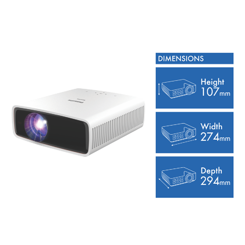 How would a smart projector change your movie nights? The Philips NeoPix 550 Smart Projector could be your ticket to an immersive home cinema experience. Boasting Full HD resolution with 1920 x 1080 pixels and a screen size of up to 100 inches it delivers stunning visuals. And with 500 lumens of brightness you can enjoy clear vibrant images even in less-than-ideal lighting conditions. Running on Android and LuminOS this smart projector offers a user-friendly interface. Plus the built-in stereo speakers with 2x7 watts of power and surround sound mode create an engaging audio experience. Measuring 310mm high 342mm wide and 157mm deep it's compact enough to fit into most spaces. The Philips NeoPix 550 Smart Projector (PH-N-SMART550) comes with a remote control quick start guide AC adapter and a 1-year manufacturer's warranty.