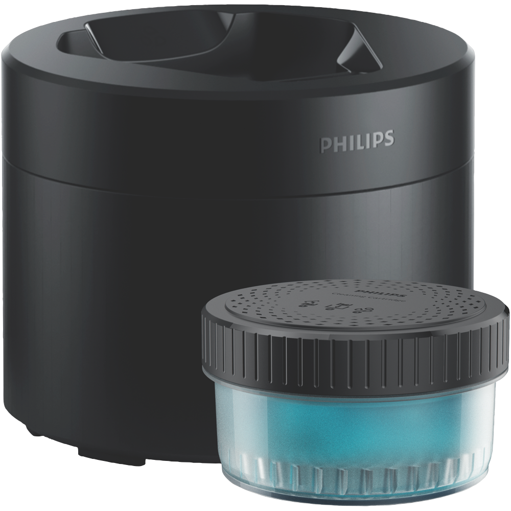 Tired of messy shaving sessions? The Philips Quick Cleaning Pod is your go-to solution for a hassle-free clean. This handy accessory works with various Philips shavers including the Series S5000 (S588X/S589X models) Series 7000 Series S8000 and Series 9. In just one minute it gives your shaver a deep clean leaving it refreshed and ready for your next shave. The skin-friendly formula is alcohol-free and has a pleasant scent. Plus the active lubricant keeps your shaver in top condition. You'll get about 30 cleaning cycles out of each cartridge. Model QCP10/01 comes with one cartridge and the Quick Clean Pod.